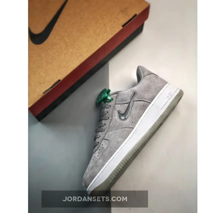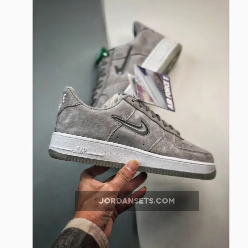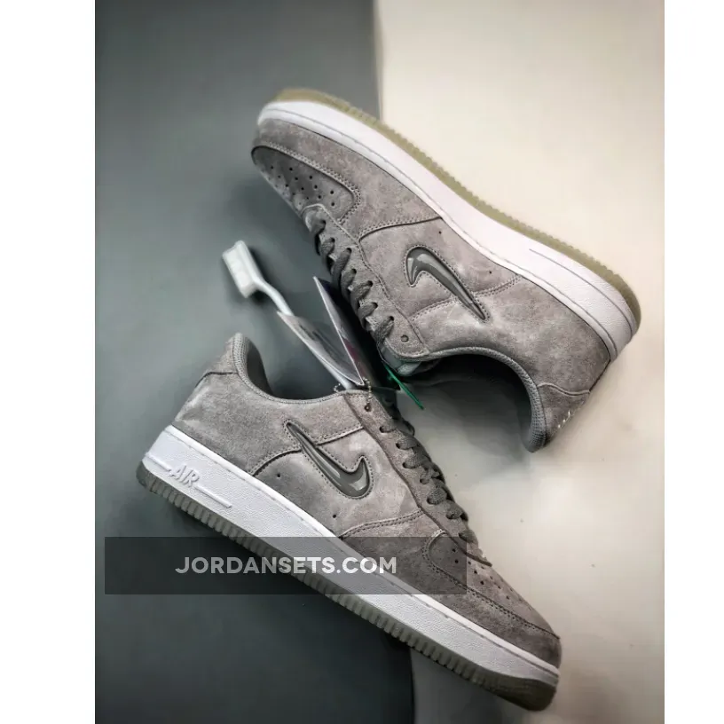 Fortieth anniversary festivities are far from winding down for the Nike Air Force 1. Case in point is the new Nike Air Force 1 Low Jewel Grey with luxurious little touches to mark a momentous year. Get ready for the Nike Air Force 1 Low Jewel Grey. This AF1 is covered in premium Smoke Grey suede from heel to toe and from base to overlays. The highlights of the shoe are the jewelled profile Swooshes on both sides of the shoe in matching tones. An embroidered mini Swoosh in grey embellishes the edge of the eye stay panel. White-on-grey branding can be found on the tongue tab and the insole. Embroidered white Nike Air text branding, on the other hand, adorns the heel tab. An all white midsole and an icy light grey semi-translucent rubber outsole finish off the design of this sneaker. Cop the Nike Air Force 1 Low Jewel Grey on Our Store Supplier app and always be in the know when it comes to the latest Nike release dates.