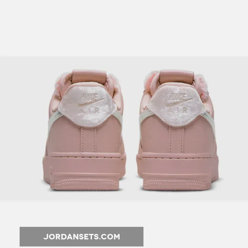 Nike Air Force 1 just combined faux fur, velvet and silver to bring you the luxurious Nike Air Force 1 Low Fur Pink. The entire upper, both the base and the overlays, are all in a light shade of pink in tumbled leather, matching the laces. The signature profile Swooshes on both the medial and the lateral sides stand out against this all-pink backdrop in smooth leather with a metallic silver finish. The luxe details come in the form of the white velour-covered heel tab with embroidered Nike branding, the fluffy pink laces and the faux fur-lined tongue.
