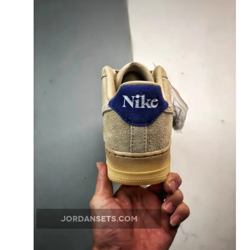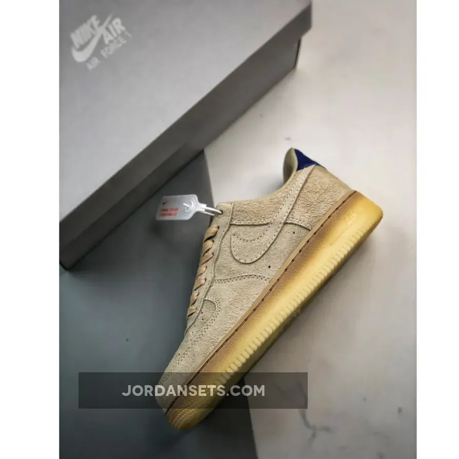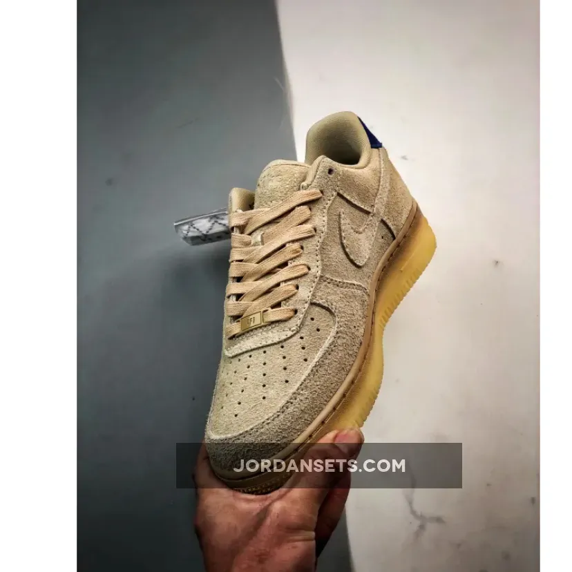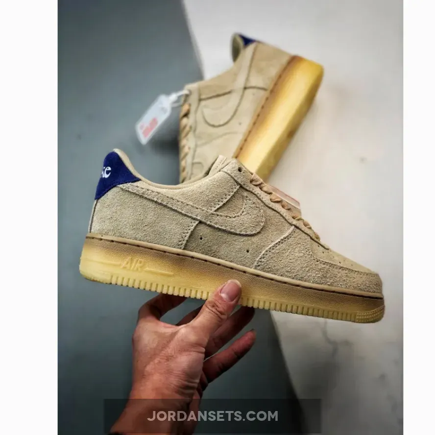 the AF1 staple is dressed in a grain, deep royal blue and polar color scheme. The show ditches its typical leather build and is instead covered in full in a shaggy suede material. The textured feel extends to the entirety of the upper, tongue, Swoosh and heels. The upper itself is covered in the grain color to match the Swoosh, laces and inner lining. Royal blue accents the heel tabs and insoles while the Nike branding is contrasted in white on the heels and insoles for added detailing. The shoe sits atop a semi-translucent rubber outsole to round out the design.