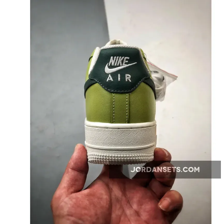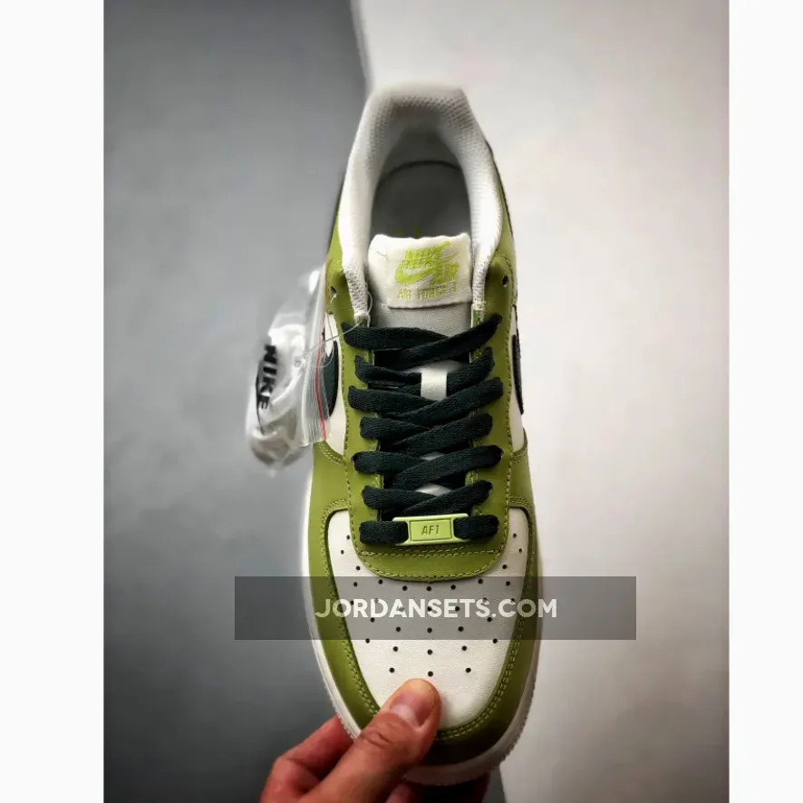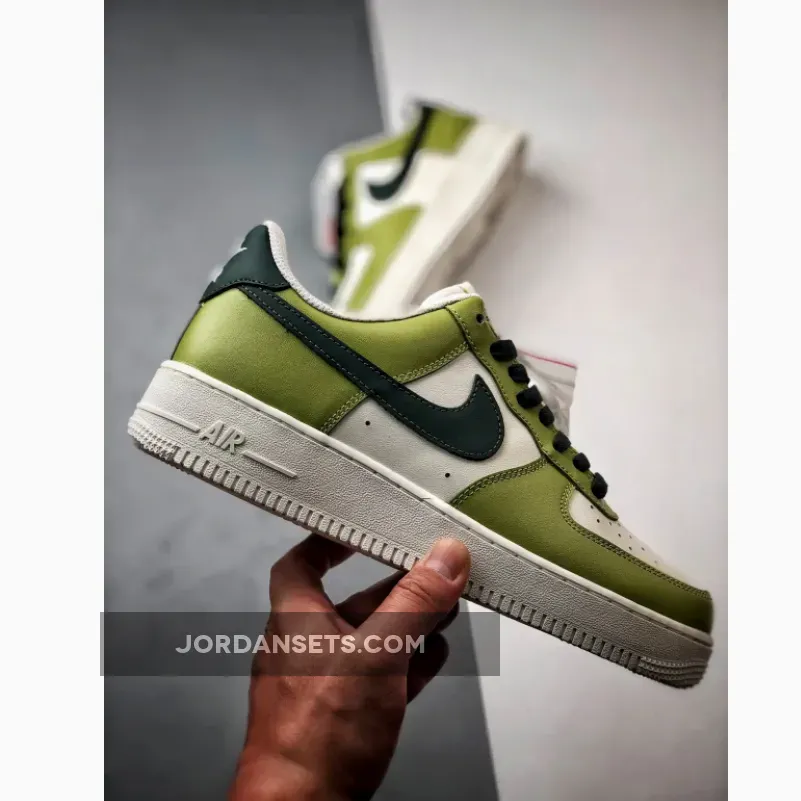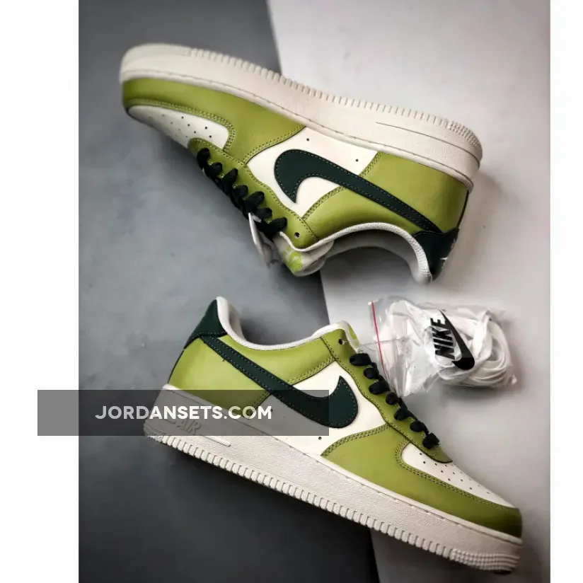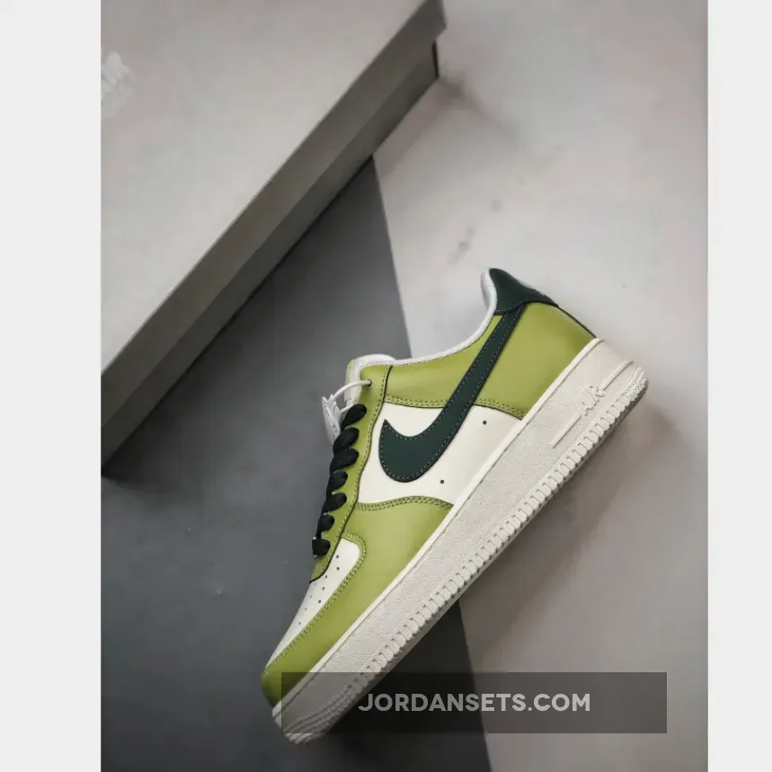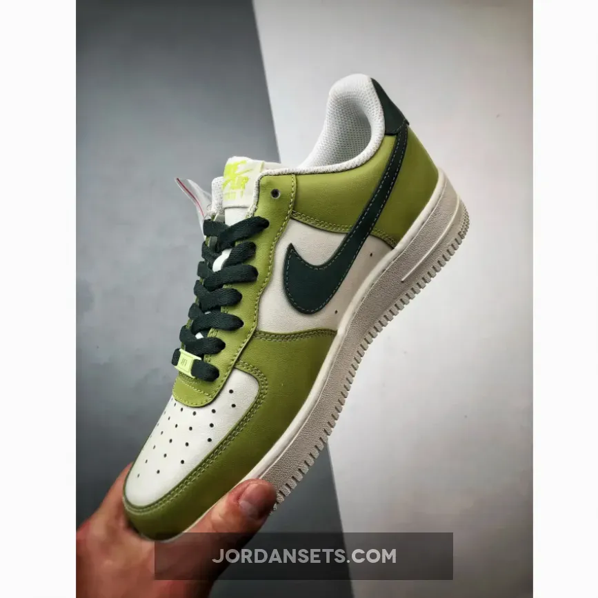 Adding an unexpected pop of brightness, the Nike Air logo on the heel tab and tongue is rendered in a striking neon color. This electric accent not only breaks the earthy monotony but also highlights the Air Force 1’s heritage and Nike’s penchant for playful details. The neon sign-off against the dark green canvas makes the “Green Apple” Air Force 1 a statement piece, ready to capture attention both on the streets and in the sneaker community.