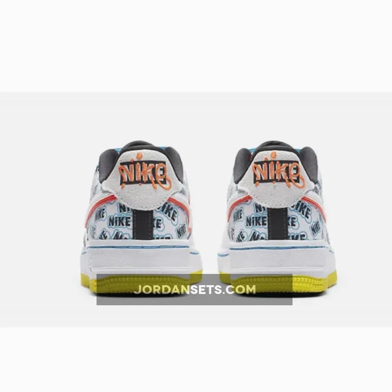 Its rear paneling is surely its most eye-catching section as it sports all-over graffiti-like Nike branding which some can even argue look very similar to the SpongeBob “A Few Moments Later” font. While not officially tied to the animation series, elsewhere on these AF1s you’ll find Nickelodeon-esque accents dispersed throughout the orange mesh throats, under-stacked Swoosh logo and heel branding, yellow treading reminiscent of Mr. Squarepants himself, and bright blue shoe strings that channel Squidward vibes.