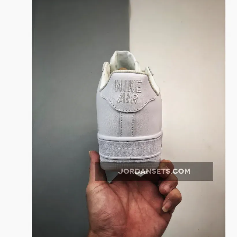 this Nike Air Force 1 Low comes dressed in an all White leather upper paired up matching colored mesh tongues and lining. The new features used on this pair are the Jewel Swooshes on the side panels and the translucent outsole placed below the White midsole. Retro “NIKE AIR” branding is spotted on the heels, and just like all other pairs from the Color of the Month” series, a Nike branded toothbrush is also includes with the kicks.