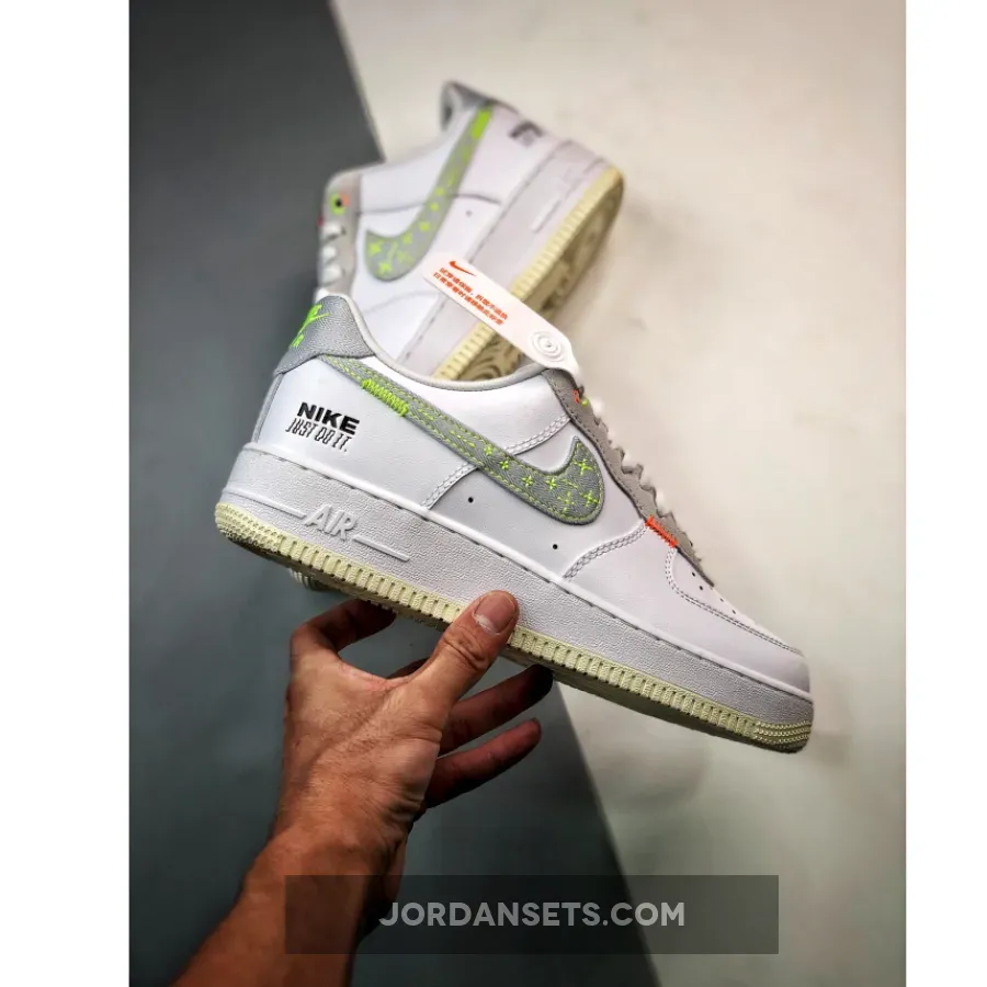 Love spruced-up white sneakers? You’ll surely be a fan of the Nike Air Force 1 Low Just Stitch It White. Fun and versatile, this piece starts off with a triple white aesthetic that’s interrupted by vibrant touches. A grey Nike Swoosh with neon accents contrasts the snowy white smooth leather. Meanwhile, the cement-coloured suede eyestays and textured heel tab complement the Check. Exposed stitches and the tongue tag dipped in a coral hue round off the eye-catching palette. Underfoot, this Nike Air Force 1 Low iteration finishes with a bright white midsole paired with a creamy outsole.