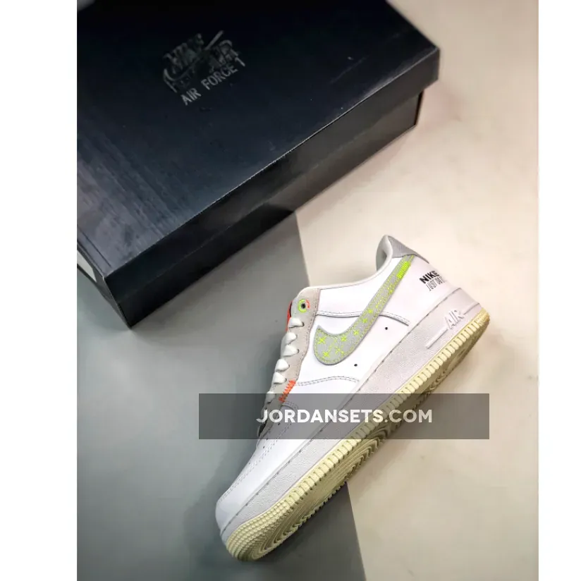 Love the classic Air Force 1 Low silhouette with a modern twist! ? The white leather base pairs perfectly with the grey suede and neon accents. The exposed stitching adds a unique and stylish touch. Perfect for everyday wear or a statement piece. #NikeAF1 #SneakerGoals ??