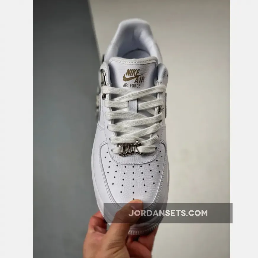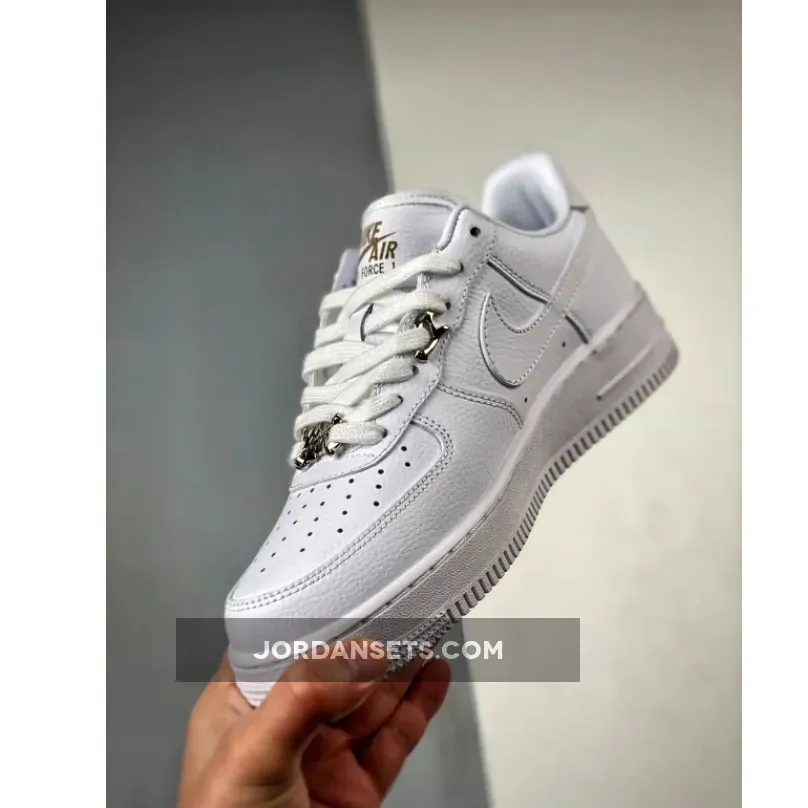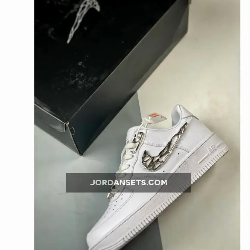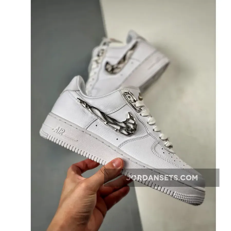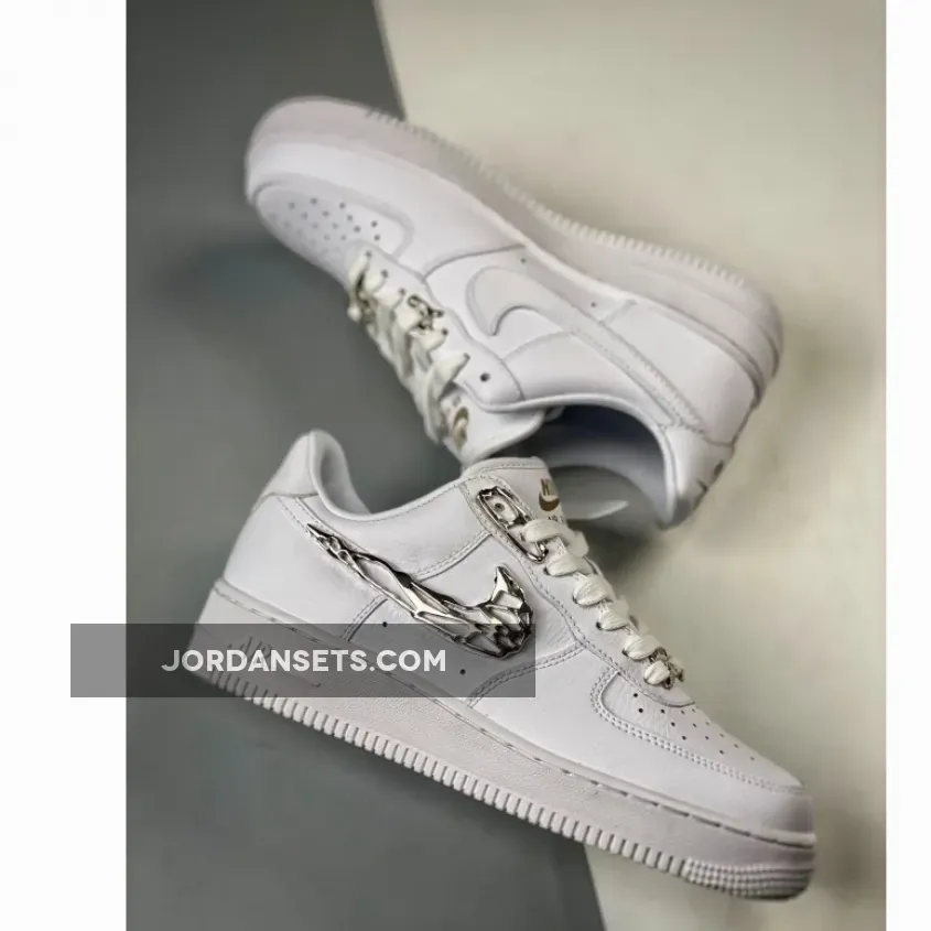 In a bold departure from tradition, Nike elevates its iconic Air Force 1 Low to new fashion heights by embracing ornate aesthetics. While Nike’s embellishments have often been subtle, the brand takes a more audacious approach this time. Intriguing silver metallic elements cascade across the sneaker, defying conventional design language with shapes that evoke molten metal in its most artful state.