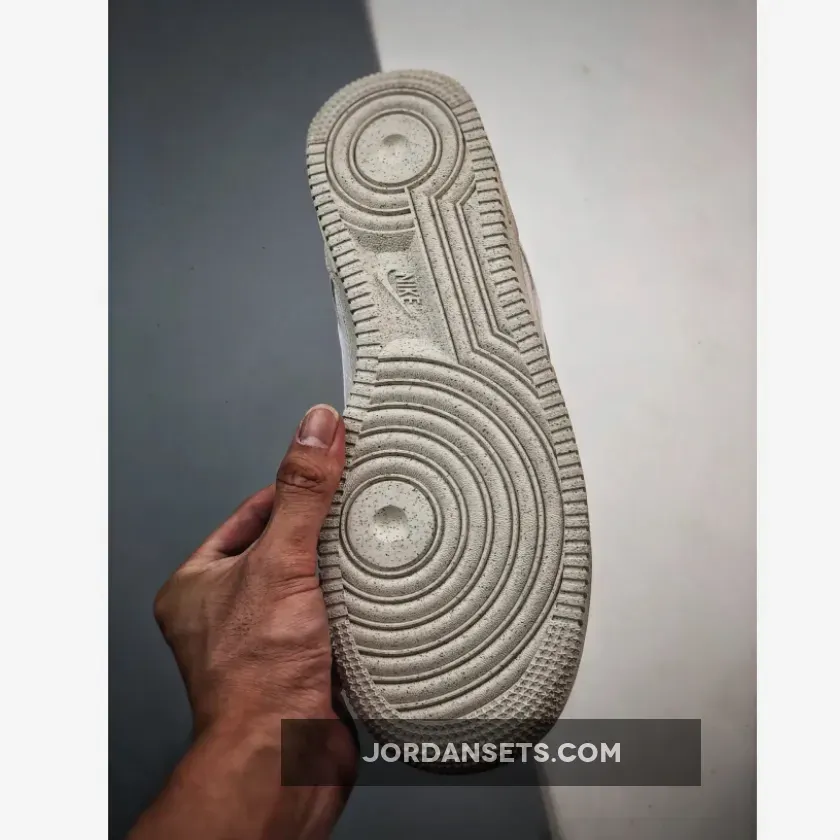 this Nike Air Force 1 Low comes constructed with recycled materials, Flyleather, and canvas with Cork heels and insoles. Nike’s “Move to Zero” pinwheel logo appears on the socliner atop a Grind Rubber AF1 rubber sole completes the design.