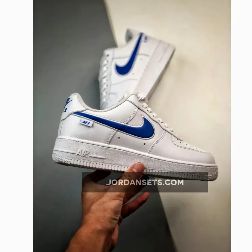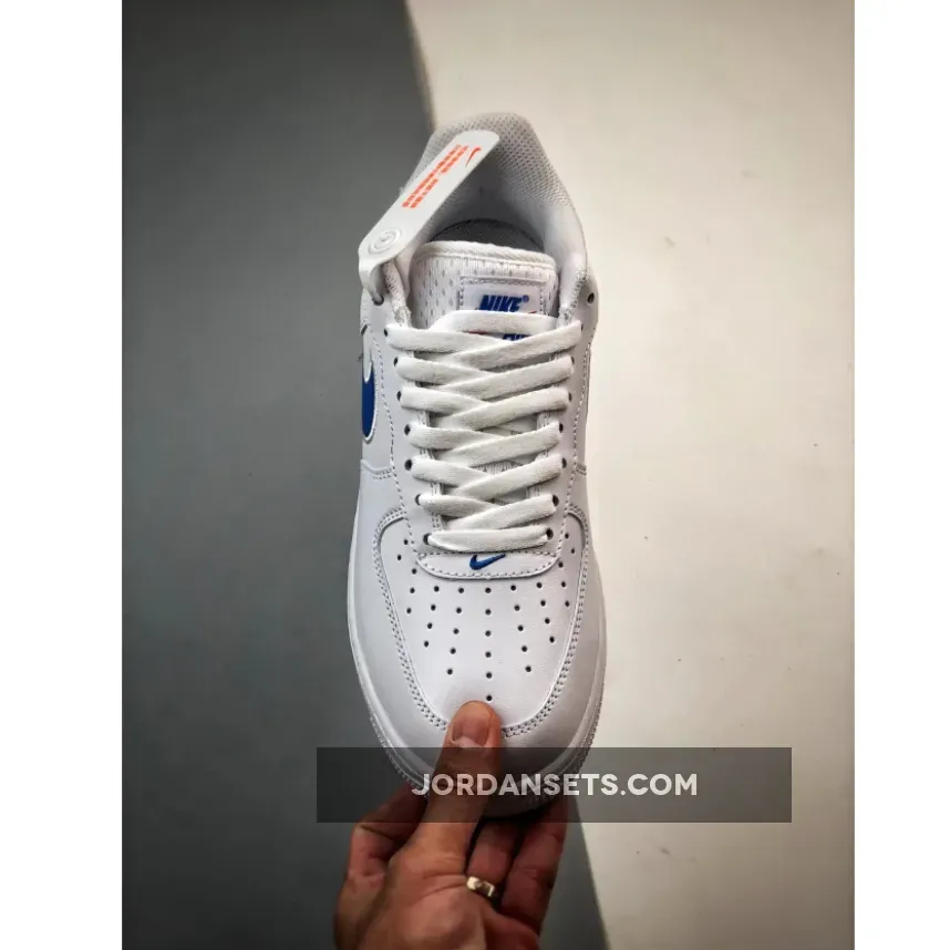 Going over this Nike Air Force 1 Low, it features White smooth leather on the upper, eyestays, and heels. Next, we have jersey mesh on the tongues, a nod to when the shoes were used on basketball courts. Color-matching the cerulean blue hue throughout the heel and vamps branded embellishments, an “AF-1” hangtag is added to further entrench the model’s athletic roots while a seldom orange shade attributes the tongue tab’s Swoosh in conclusion.
