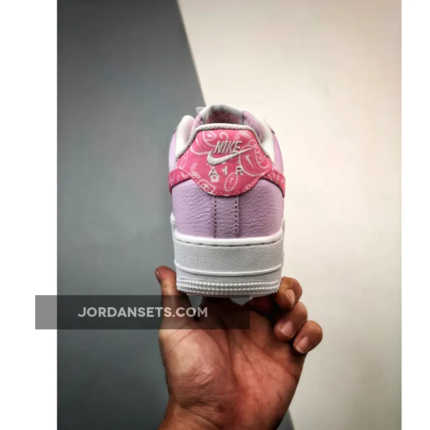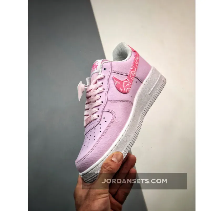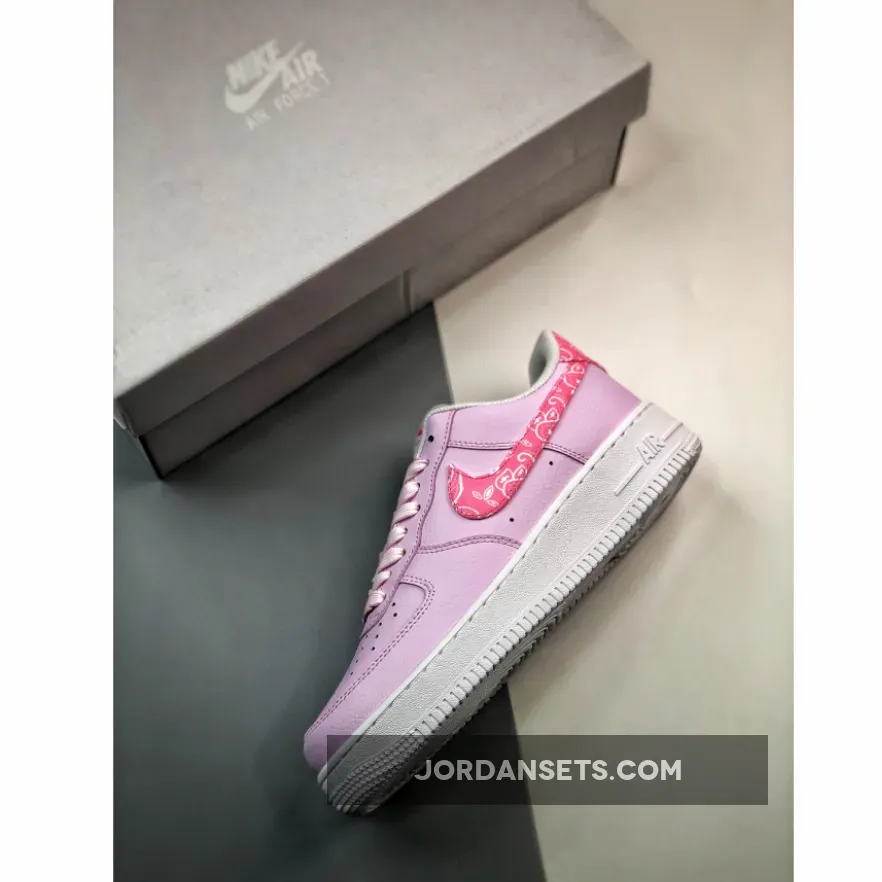 Make your ensemble extra eye-catching with the Nike Air Force 1 Low Pink Paisley. This dainty take on the AF1 sees the recognisable chunky silhouette decked in a pink-tinted white leather upper and is complemented with similarly coloured flat laces and overlays. Adding extra flair are the rosy paisley prints that animate the Nike Swoosh and heel tab. Even the tongue tag also features pink branding.