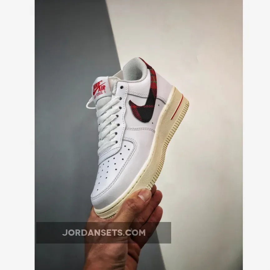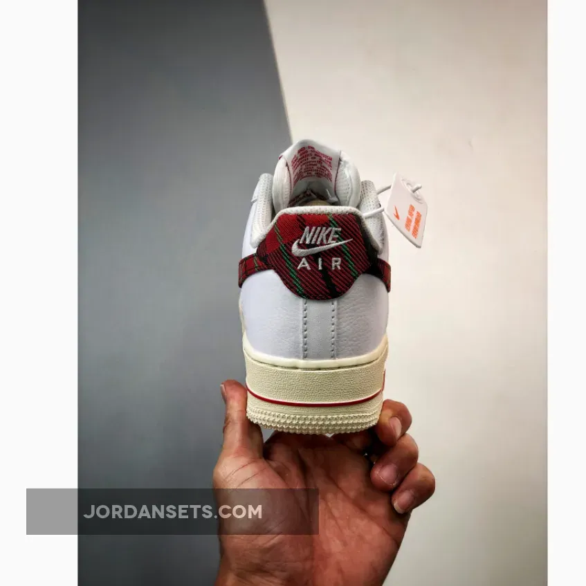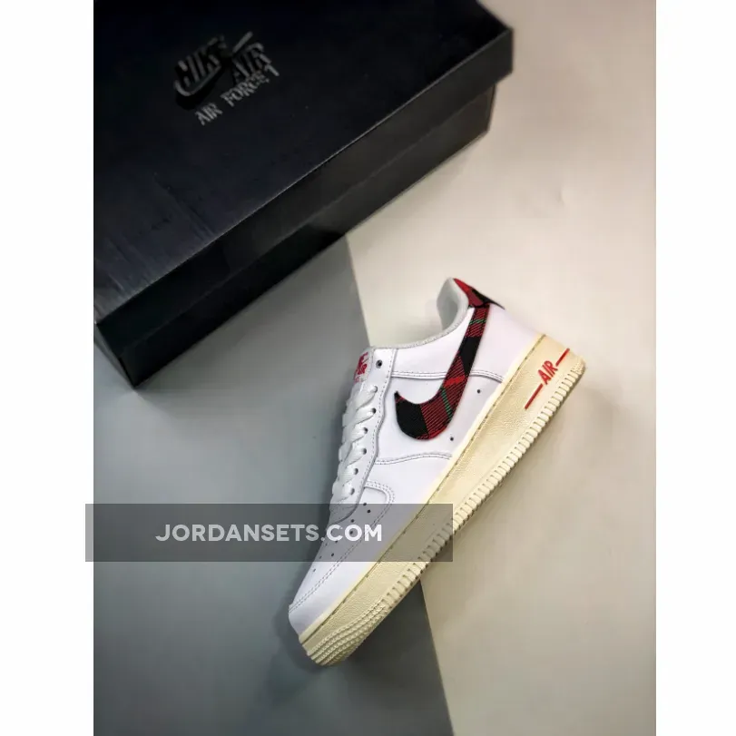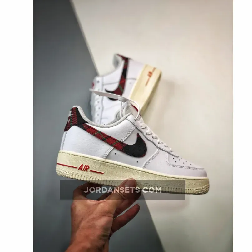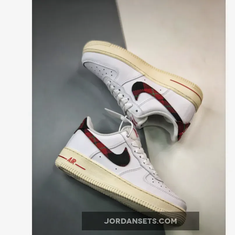 A classic sneaker with an eye-catching accent, the Nike Air Force 1 Low Plaid White Red is dressy yet casual at the same time. This sneaker starts with the typical AF1 smooth white leather upper which includes the base, perforated toe and overlays. Adding a touch of flair to the shoe’s crisp look is the plaid print — with hits of red, black and green — applied to the heel tab and the Swoosh that shoots across the lateral and medial sides. Elsewhere, the Nike branding on the tongue is dipped in vibrant red.