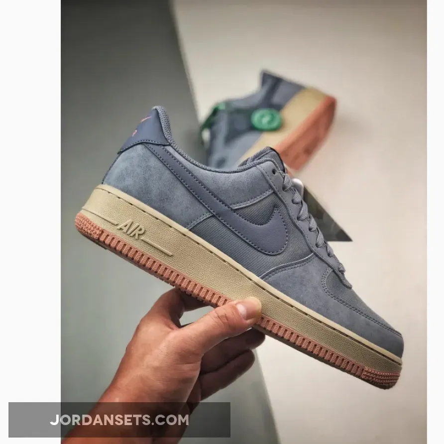 Incorporating an Ashen Slate and Red Stardust color palette, this iteration of the Nike Air Force 1 Low boasts a durable twill base, suede overlays, and leather Swooshes and heels. The entire upper is immersed in the Ashen Slate tone, complemented by Red Stardust accents on the tongue labels, insoles, and embroidered heel tabs. A two-tone AF1 rubber sole, along with waxed laces, rounds off the design seamlessly.