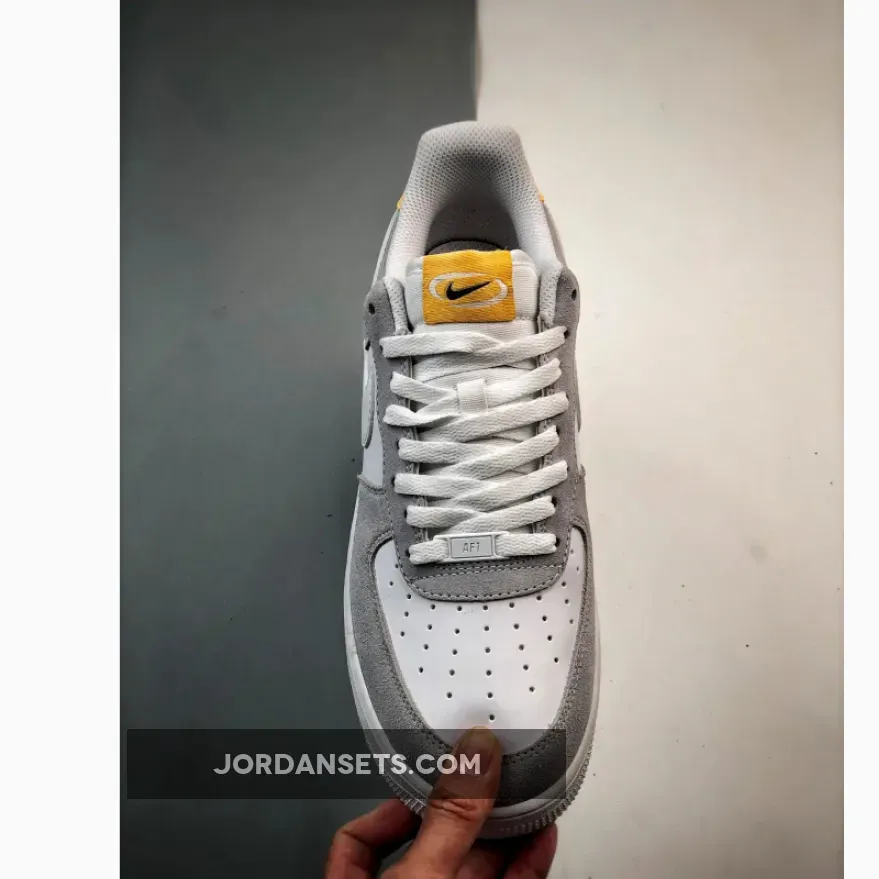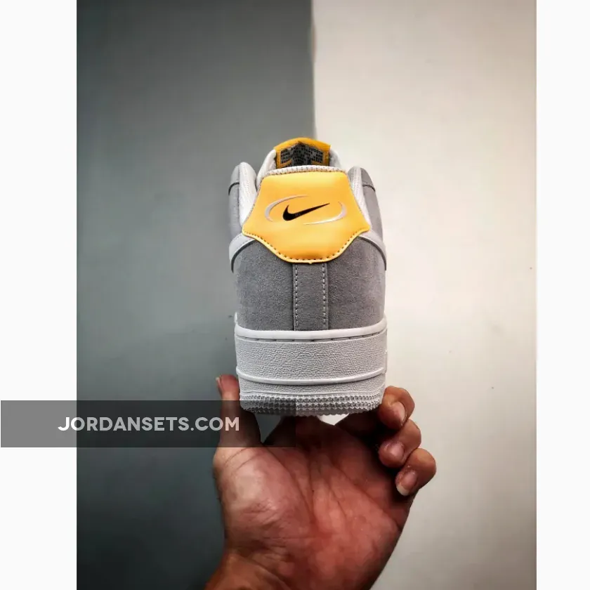 Covered in Pure Platinum, White, Melon Tint, and Black, this Nike Air Force 1 Low starts off with a White leather construction on the base of the upper which is then joined by Pure Platinum suede on the overlays. The punch of color is seen on the tongue tags, insole branding, and heel tabs with the addition of Melon Tint as well as black Swooshes on the tongues and heels. Outside of the renovated logos, the 1982 model sticks to its constructive roots with both a tumbled leather and suede overlay option that indulge in a Triple White and accented grey color blockings, respectively. Identical through both pairs is the use of a golden yellow hue, that fills the clad-white pair’s mid-foot Swoosh and oval whereas the greyscale effort utilizes the titular tincture as the base of its newly formed insignias.
