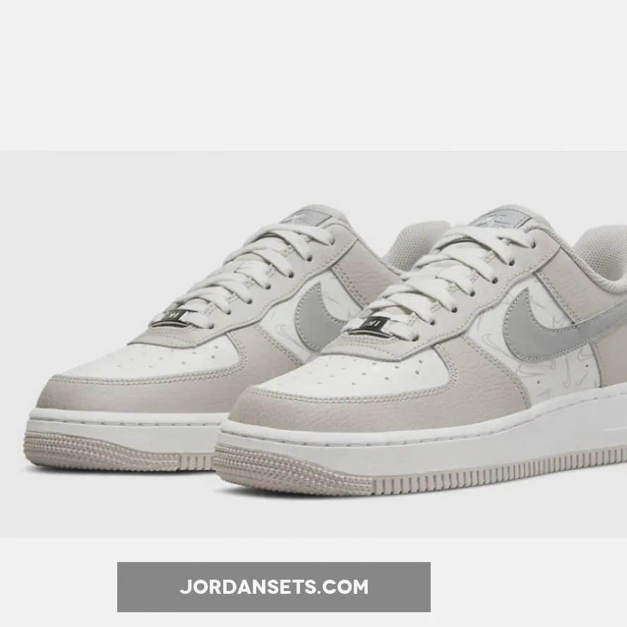 As Nike Air Force 1 continues the celebration of its 40th anniversary, the silhouette has just dropped a cool, neutral and Swoosh-laden variant, the Nike Air Force 1 Low Reflective Mini Swoosh Grey. Some of the first striking details of this AF1 Low are the multitude of mini Swooshes in light grey on the mid-panels of the shoe. The rest of the upper is a two-toned pebbled leather affair, white on the base and grey on the overlays. The smooth leather profile Swooshes on both the medial and lateral sides of the shoe are the darkest shade of grey. The sky blue heel tabs deviate from the all-grey and show off embossed Nike branding and more mini Swooshes in grey. The Nike Air branding on the grey leather tongue tabs is embossed in silver, matching the metallic lace deubrés on the forefoot. All the Swooshes on this shoe have a reflective finish.