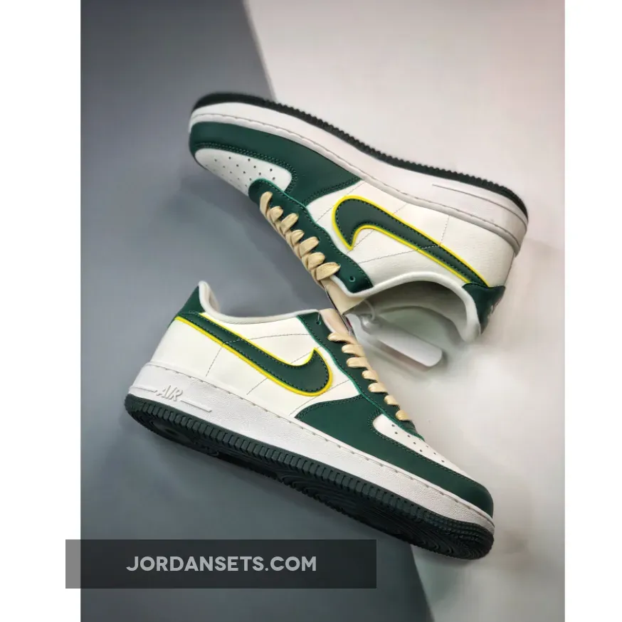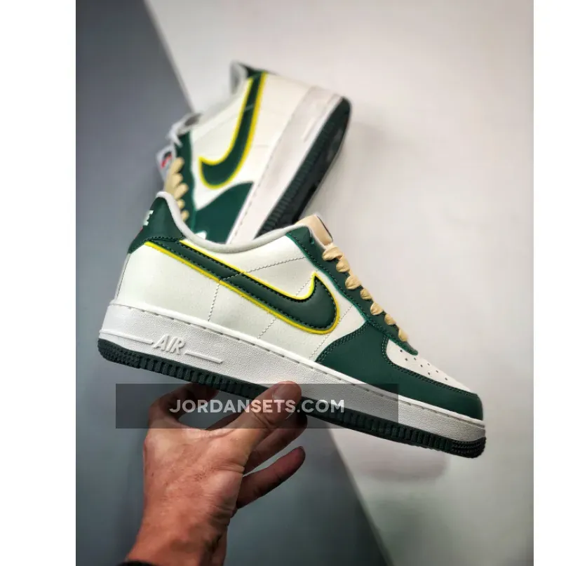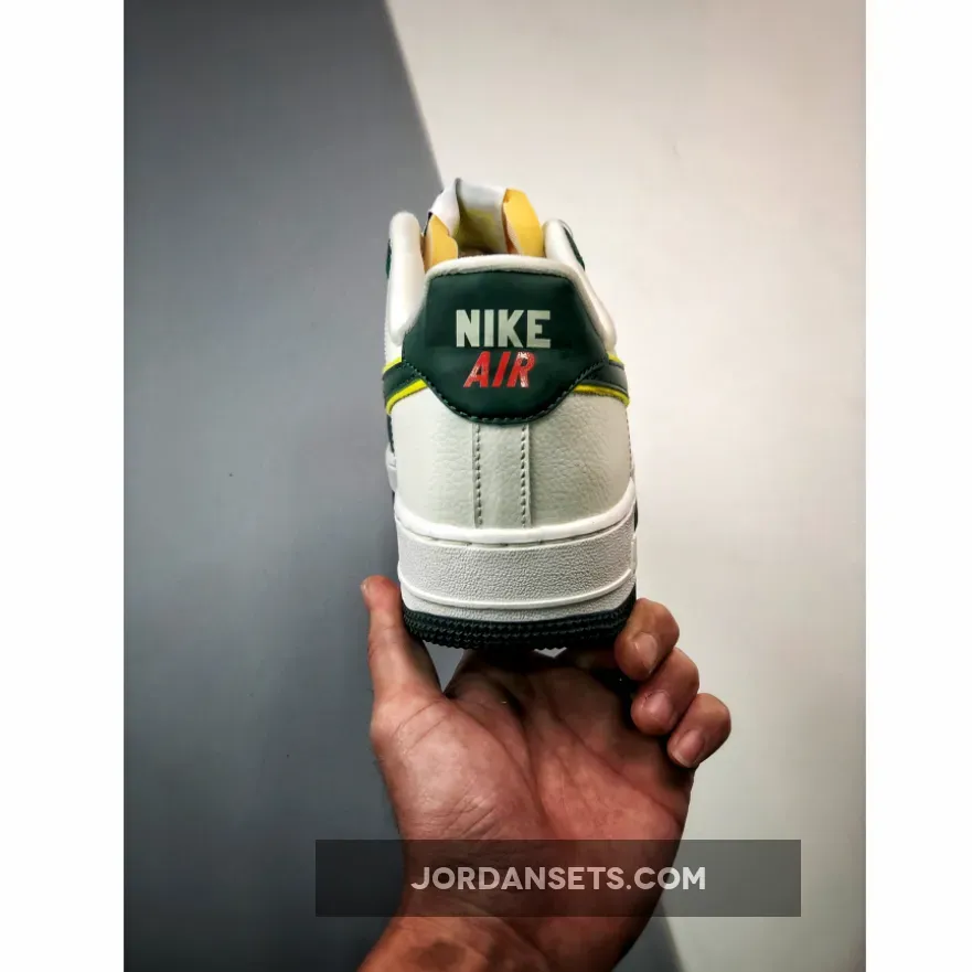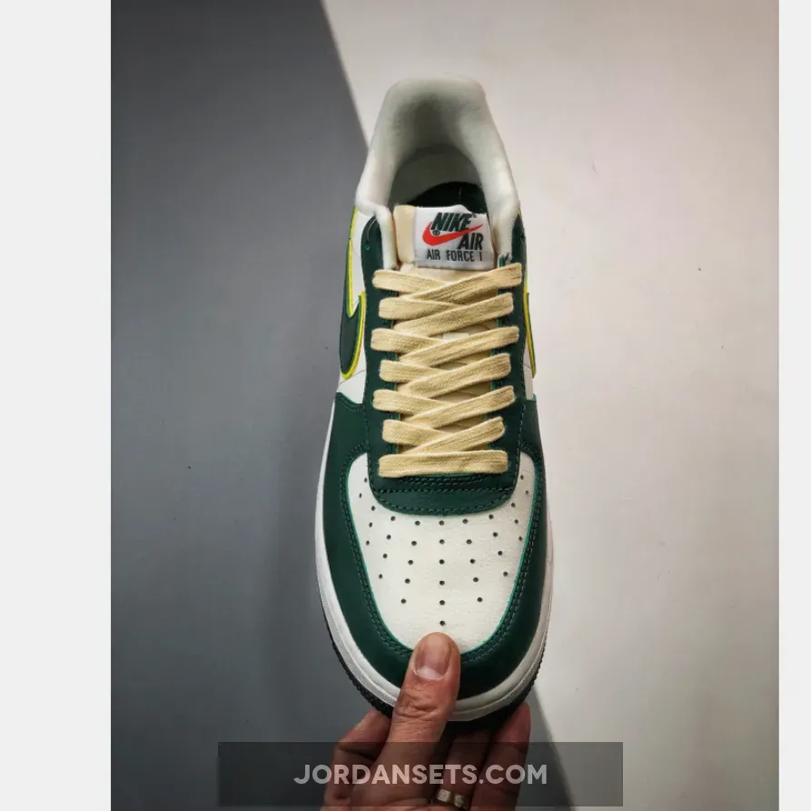 Nike truly celebrated the 40th anniversary of its Air Force 1 in style, giving us fellow sneakerheads a range of colourways worth celebrating. Diving into the silhouette’s archive, the Swoosh brings back some OG features with this “Sail Noble Green” pair and is sure to please some of the older Air Force heads.The noble green taps into the varsity colours of an 80s Collegiate Basketball team, a shade not too different from the Michigan State “Spartan Green” Dunk retro from 2020. Another interesting change to the upper is the OG stitching taken from the shoe’s debut ’82 version, giving the white leather sidewall a much more stripped back finish. Taking hints from an even older Nike Basketball shoe that was released in ’73, the exposed mesh tongue nods to the Nike Blazer that launched nearly ten years before the Air Force 1. Inside the shoe, the standard “Nike Air” has been swapped for a retro yellow flag with a red swoosh, the words below reading “NIKE The Sports & Athletics Company”, hinting at the brand’s early years.
