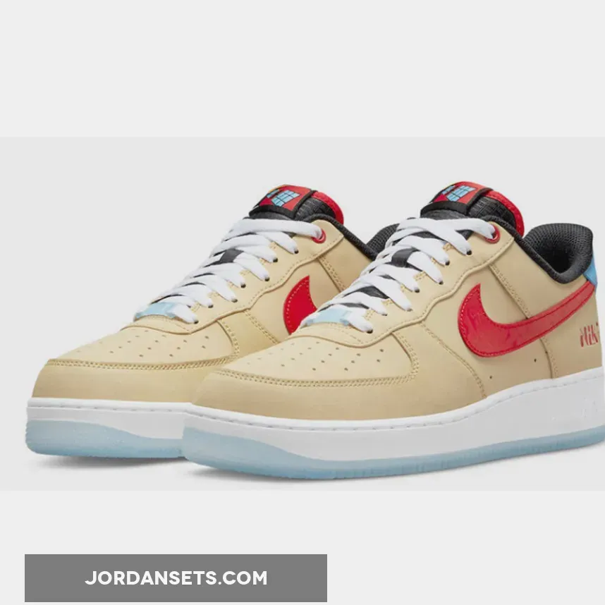 nike satellite #nike air force 1 satellite #af1 satellite #nike air force 1 low satellite #nike air force 1 ’07 lv8 sneakers in sesame/university red #blue and tan nike #red and tan air force ones #air force 1 satellite