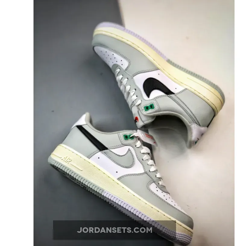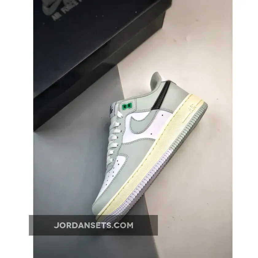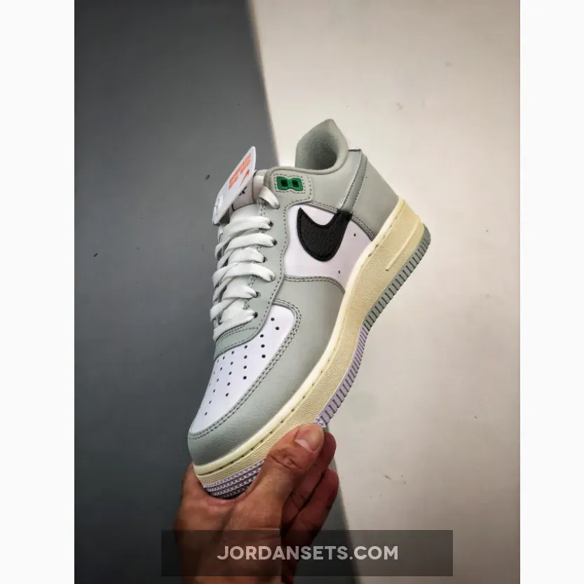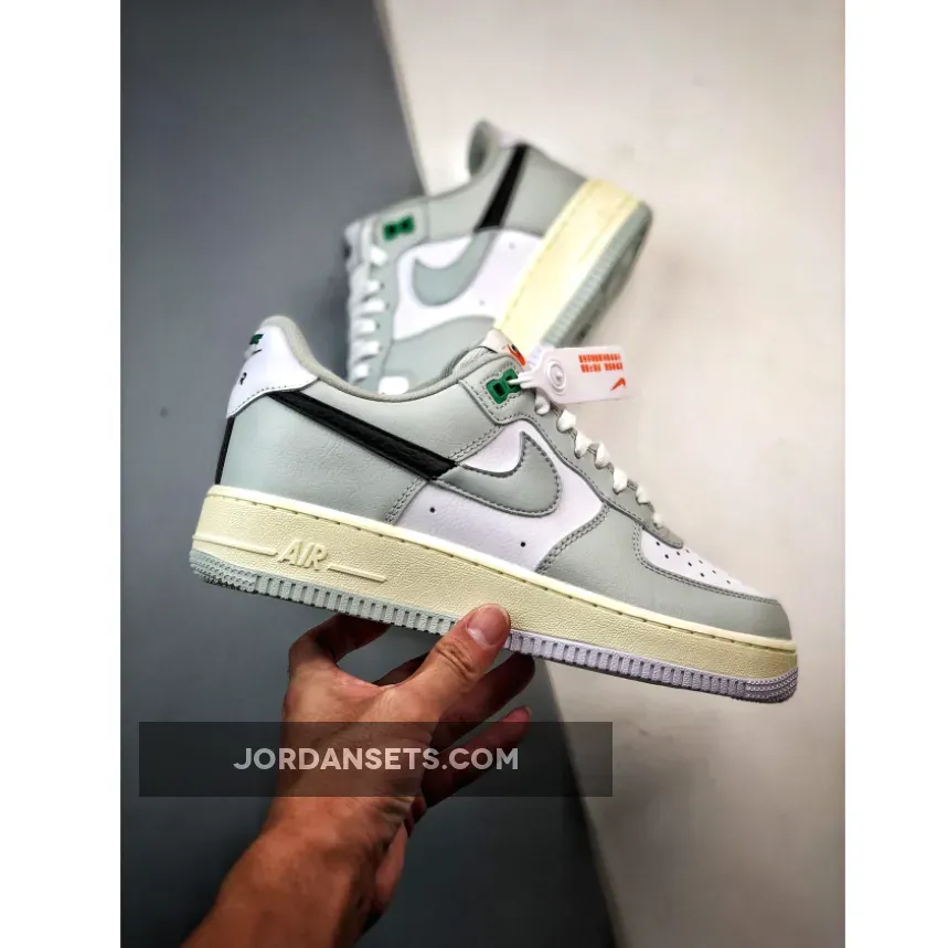Nike continues their “Split” series with this new colorway of the Nike Air Force 1 Low. Taking on an official color combination of Light Silver/Black-Light Silver-White, this offering of the Uptown gets constructed out of a full leather upper with White serving as the base hue and grey noted on the overlays. The defining “split” theme is then seen on the Swooshes, and the branding on the tongue tags, insoles, and heel tabs. Green upper eyelets, an aged Sail midsole, and a split rubber outsole finish off the look on this Nike Air Force 1 Low
