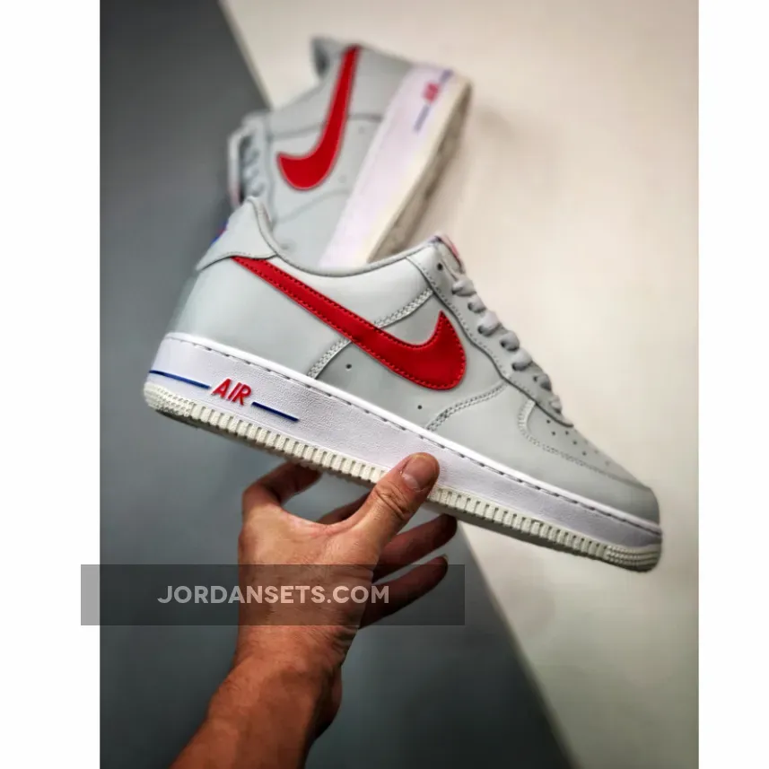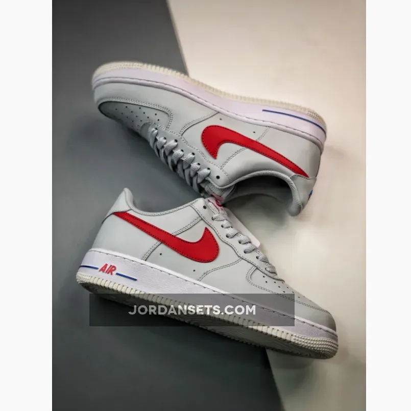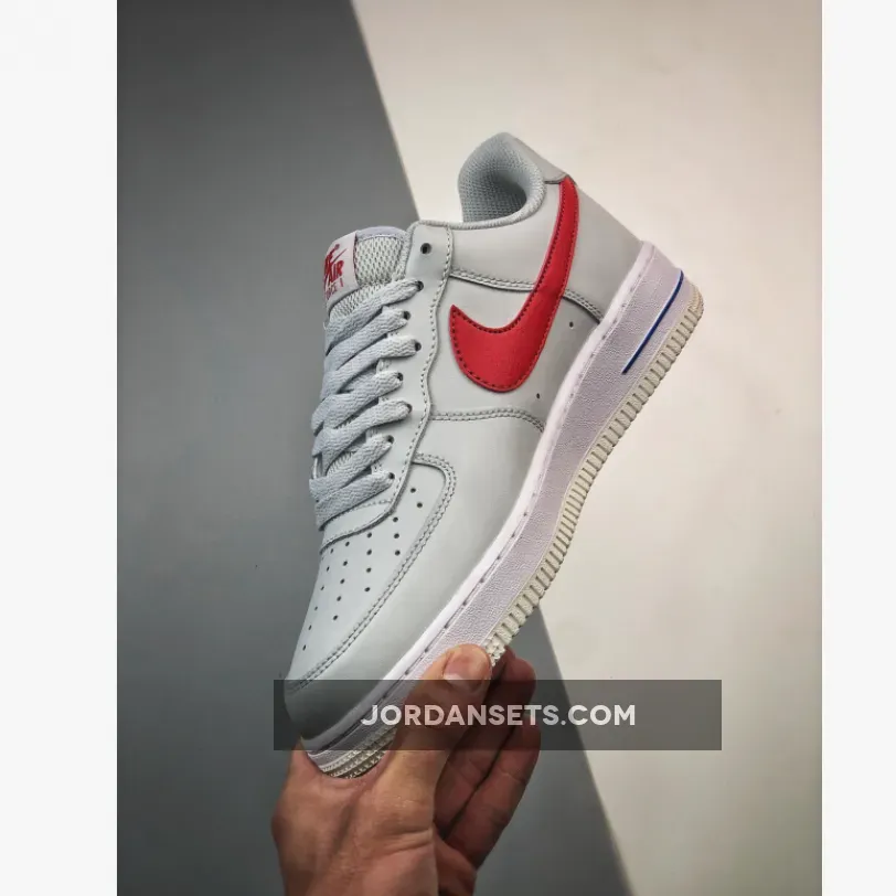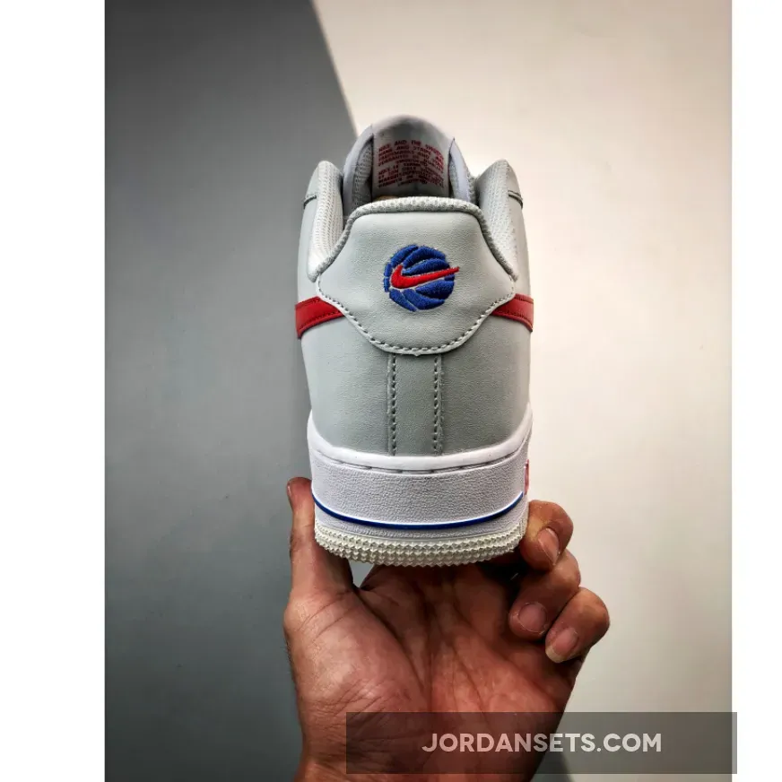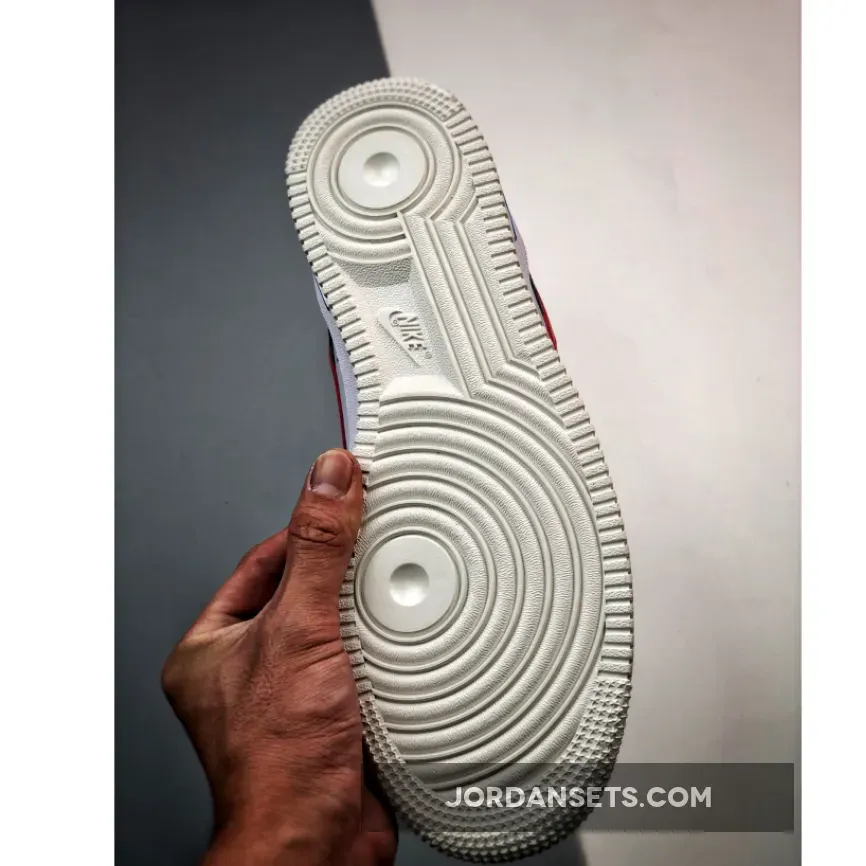 The forty-year-old Nike Air Force 1 model teams up with the NBA to come up with the patriotically themed homage to basketball, the Nike Air Force 1 Low USA White Red. This low-cut AF1 has an all-immaculate-white smooth leather upper, from the base to the overlays, matching the mesh sock liner and the laces. The standout details of this shoe are the pebbled leather signature profile Swooshes on both the medial and lateral sides of the shoe in vibrant USA flag red. This red repeats on the Nike Air branding on the white tongue label. The heel tab, on the other hand, shows off a co-branded logo in blue and red. An embossed “AIR” text branding adorns the lateral heel together with a blue accent line.