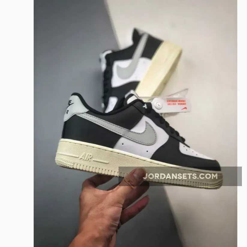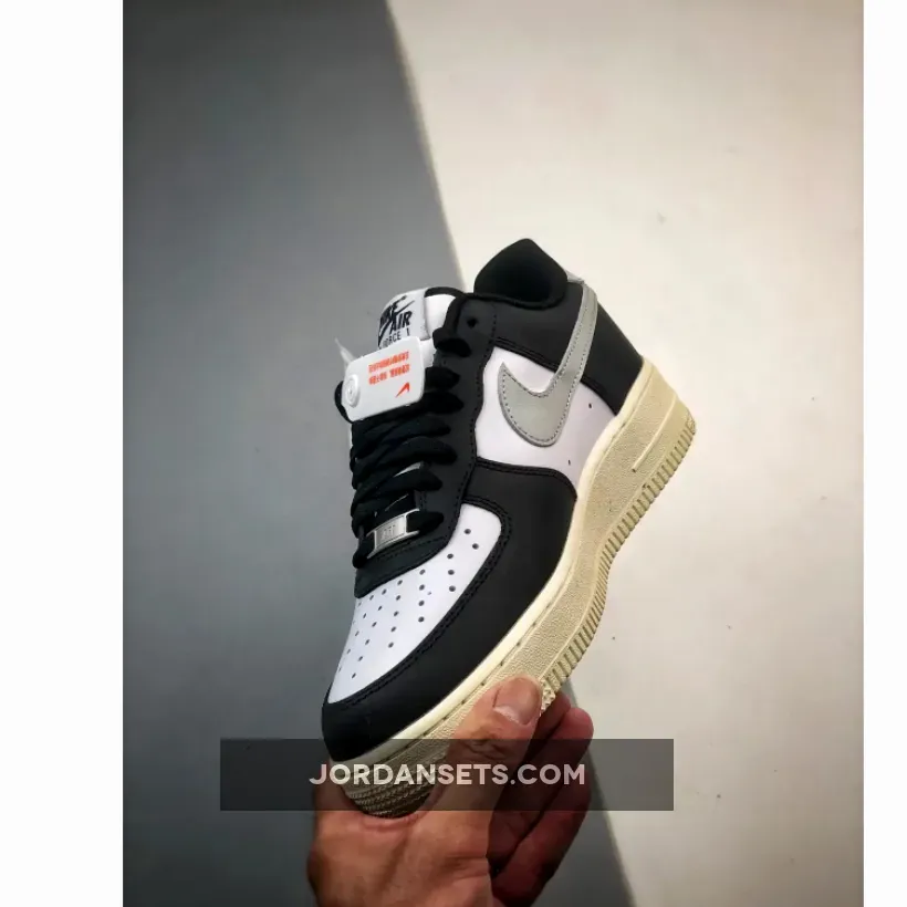 This offering of the Nike Air Force 1 Low comes constructed in a full leather build with perforations for breathability and mesh tongues and lining. It features a White upper with Black overlays, laces and inner lining detailed with Grey Swooshes and heel tabs. Black branding on the tongue labels, heels, and insoles atop a solid Sail AF1 rubber sole completes the design.
