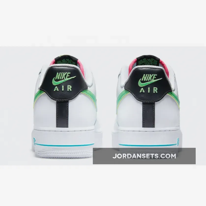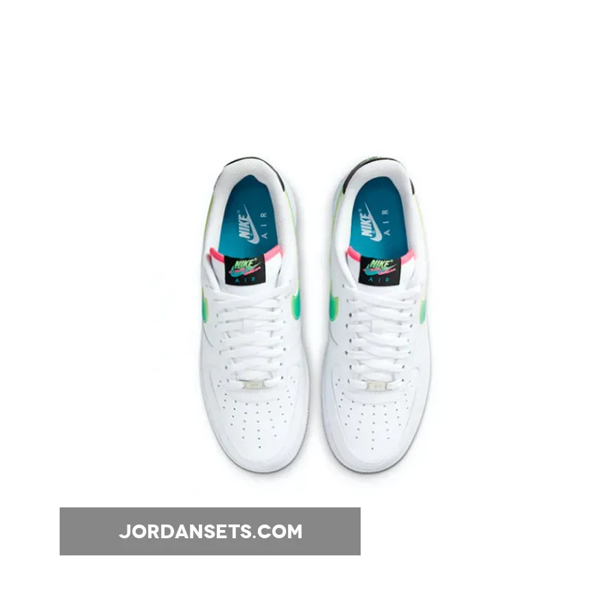 This Nike Air Force 1 feature leather across the upper dipped in White while Black appears on the heel and tongue labels. Next, it comes highlighted with neon accents throughout that give them a 90s feel.