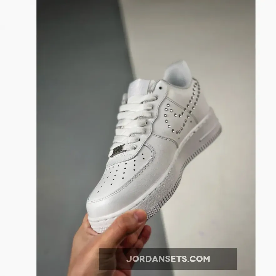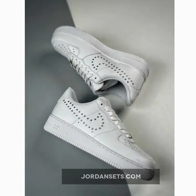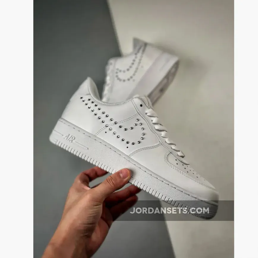 Fresh AF! ✨ New Air Force 1 Low with sparkling silver studs. Love the classic silhouette with a modern twist. #NikeAF1 #SneakersGoals ?