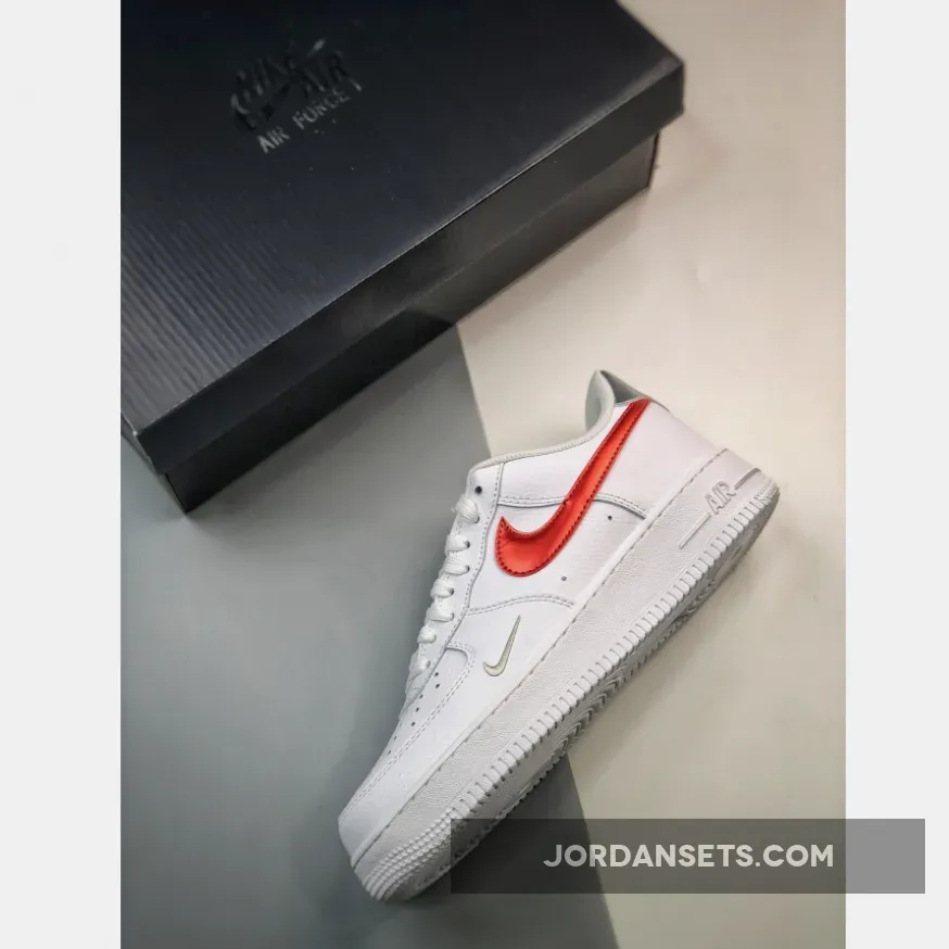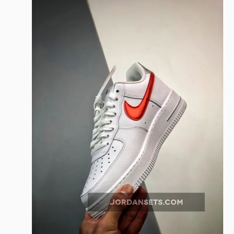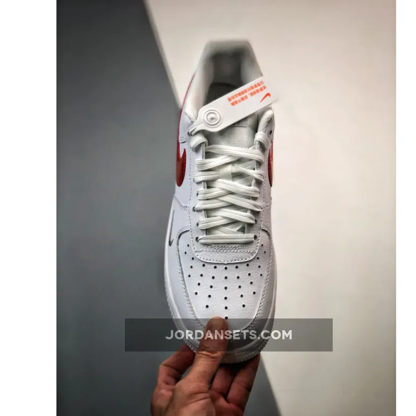 This Uptown starts off with an all-white smooth leather construction all throughout the upper with tonal detailing on the tongues, laces, inner liner, and the entire AF1 rubber sole unit. As far as the branding goes, this Air Force 1 gets hit with Wolf Grey branding on the tongues and insoles, Picante Red metallic Swooshes on the side panels, and Metallic Silver on the heel tabs and the mini embroidered Swooshes on the forefoot round out the look on this Nike Air Force 1 Low.