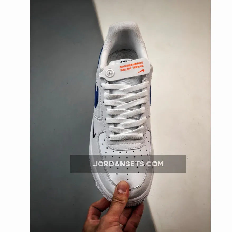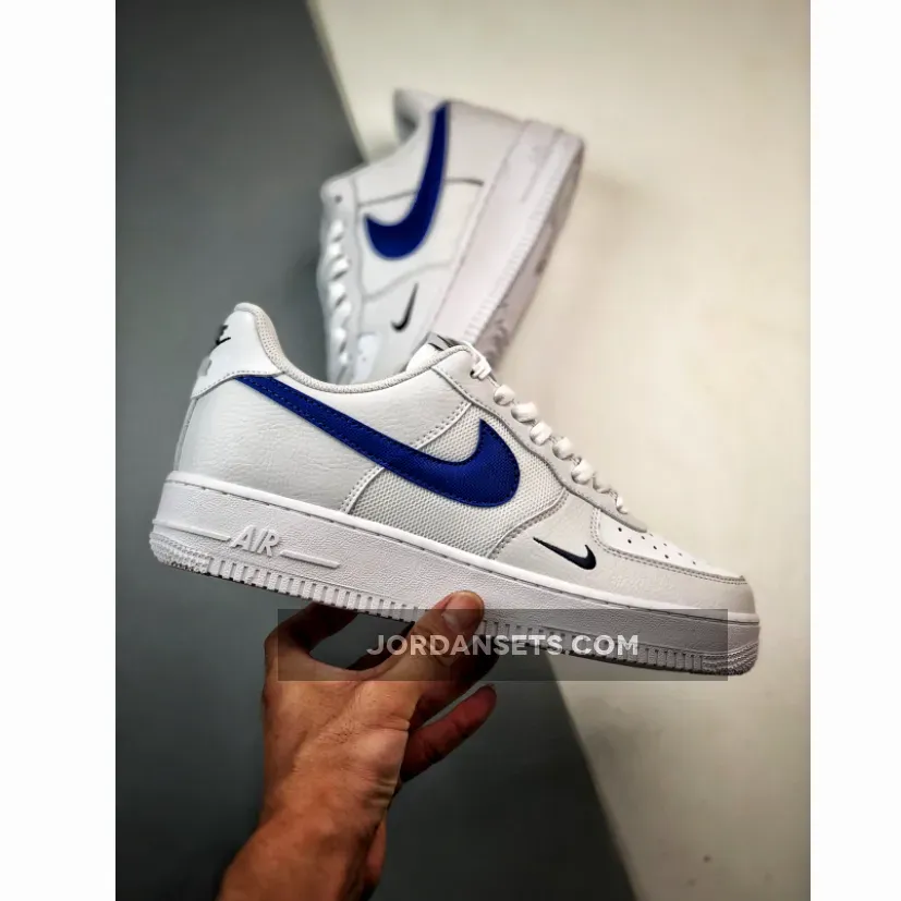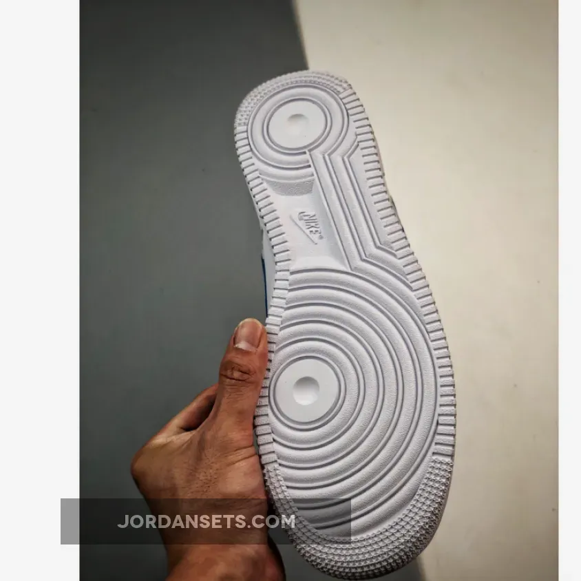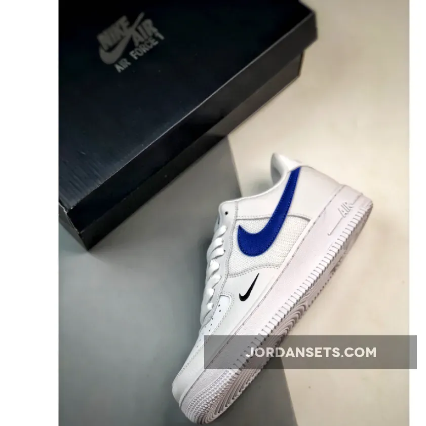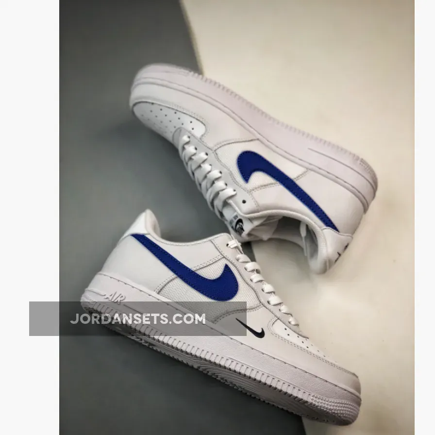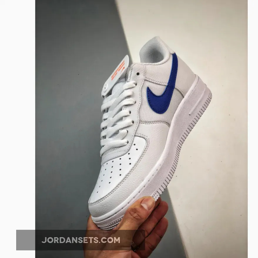 This low-top AF1 has a classic “Triple White” look on the upper with smooth white leather on the toe box and the heel tabs and tumbled leather on the rest of the overlays. Here, Nike has taken the Sp[ring/Summer season into account, as it’s added some breathability to the midfoot and tongue through mesh materials. The mid-panels swap out the usual smooth leather with a tightly knit mesh. To add contrast to the all-white palette two different shades of blue are used on the detailing. It’s royal blue Swoosh overlays are textured to match, while an added mini Swoosh of navy joins color-marched branding at the tongue and heel to complete the design. An all-white sole unit wraps up the look of this sneaker.