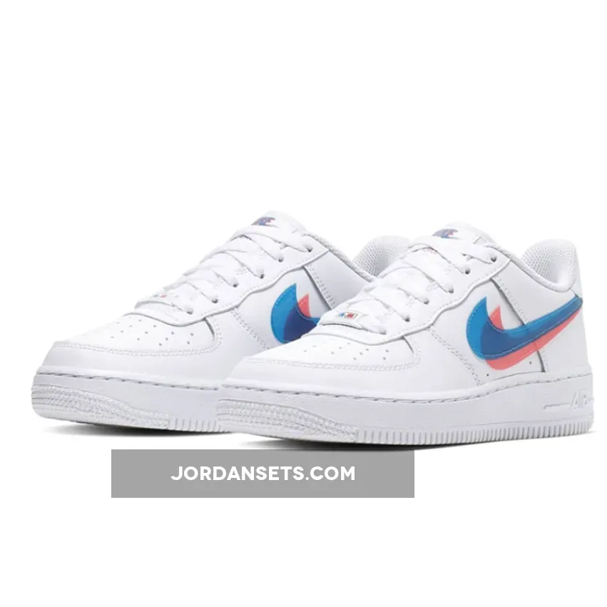 This Nike Air Force 1 Low features White leather across the upper while the same shade lands on the midsole, rubber outsole, laces and liner. What sticks out the most is the 3D structure of the Swoosh on the panels, tongue, heel and insoles which comes in Blue and Pink.