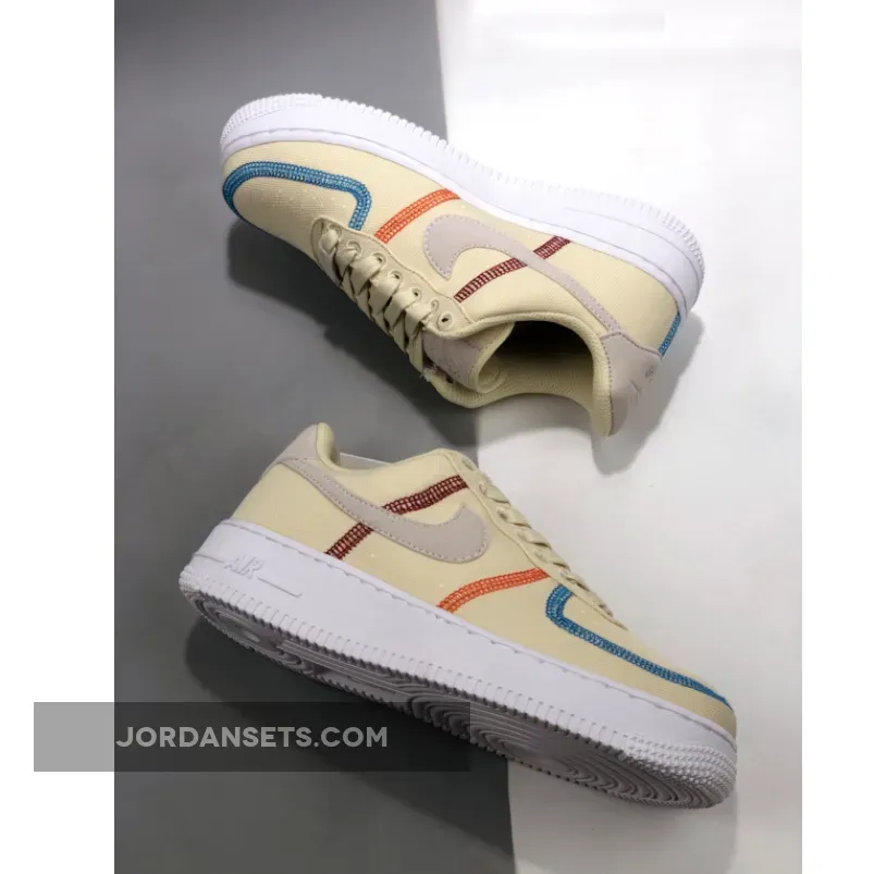 This offering of the Nike Air Force 1 Low features a full Lime canvas upper with perforations in the toe paired with suede material covering the tongue patches, Swooshes, and heels. Finishing off the design are exposed stitching in Blue, Orange, and Purple atop a solid White rubber sole.