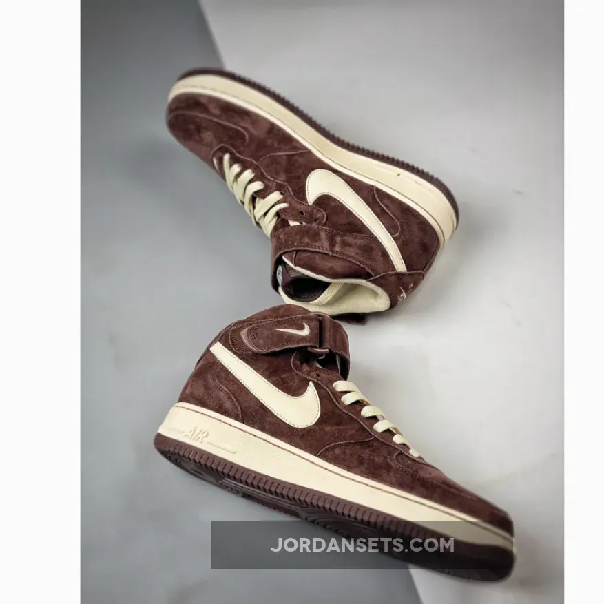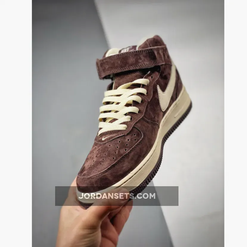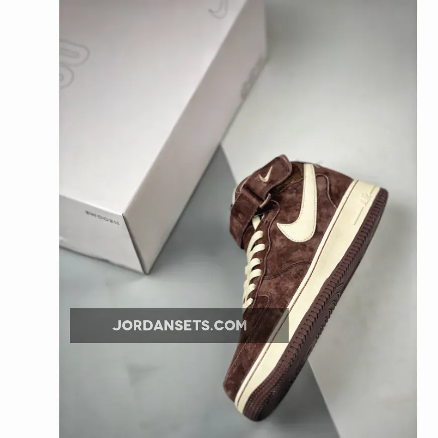 “The Nike Air Force 1 Mid ‘Chocolate’ pairs iconic basketball style with a premium build. The upper utilizes velvety suede in a chocolate brown hue, contrasted by subtle cream accents on the signature Swoosh, laces, and collar lining. Variable-width lacing works in tandem with an adjustable ankle strap to deliver a secure fit.A deliciously stunning sneaker, the Nike Air Force 1 Mid Chocolate Cream is a modern rendition of the well-loved Air Force 1 Mid “Chocolate” shoe that was launched in 1998. Like its older counterpart, it features a brown smooth-to-touch supple nubuck upper.