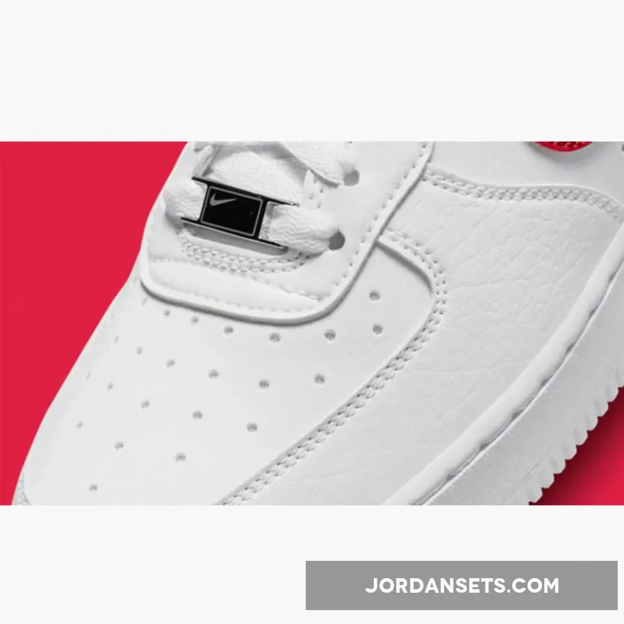 This offering of the Nike Air Force 1 features a Nike Flyleather build with University Red accents on the Swooshes, and heels.