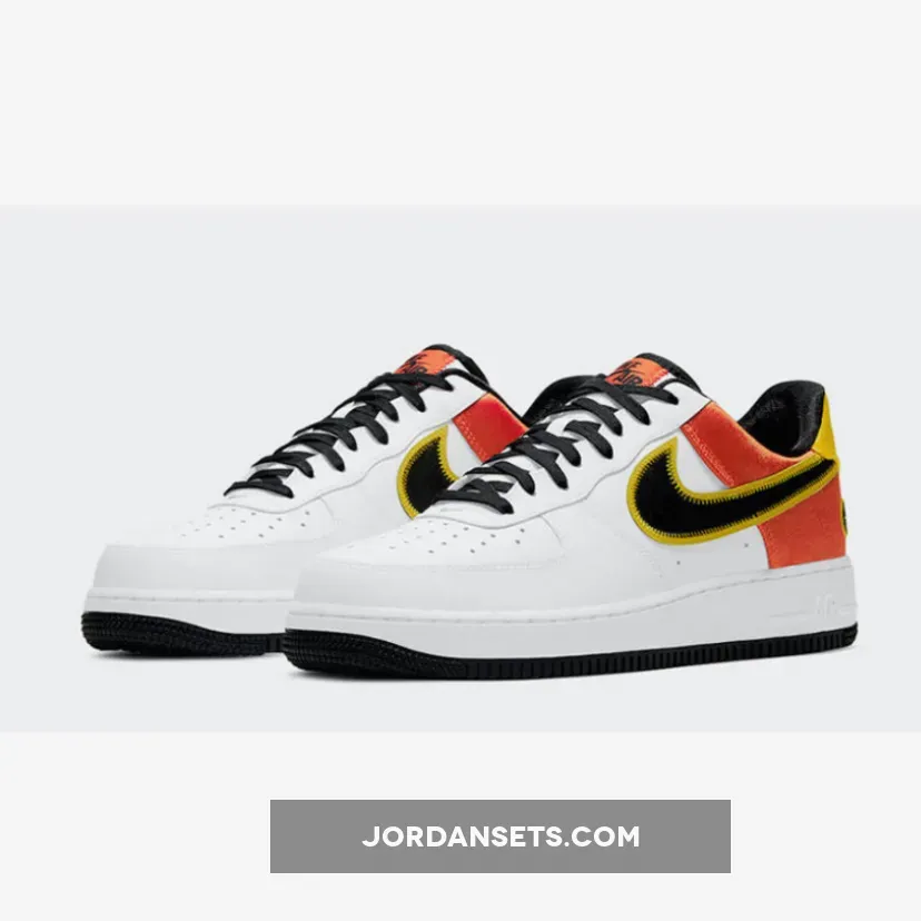 The Nike Air Force 1 Rayguns is the latest colorway of the hugely-popular AF1 sneaker to be unveiled to the masses. Dedicated to Roswell Rayguns, a fictional ABA basketball team put together by Nike’s basketball division, the forthcoming rendition of the classic Air Force 1 boasts a colour arrangement heavily influenced by the team’s away jersey. Official images of the pair are now live so keep reading on for a closer look.This is certainly not the first time we have seen the Raygun theme on Nike shoes. Initially introduced by the Nike SB Dunk Low back in 2005 then followed by a tie-dye scheme in December 2019, it is now set for a comeback early next year using Bruce Kilgore’s iconic Nike basketball sneaker as the canvas.Working on a low top profile just like the OG silhouette, premium white leather crafts the layers forefoot, however, the entire heel panel is finished in an orange satin coating for a luxurious pop of contrast. Further accentuating the colour scheme is yellow textile basting the heel panels and borders of the black Swoosh logos on the sidewalls. A Raygun alien face basketball badge embroidered on the lateral heel then finalises the design.