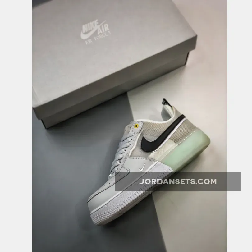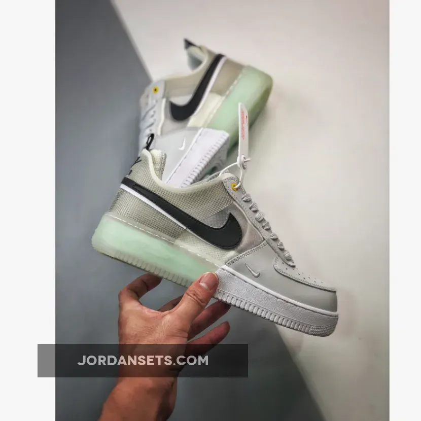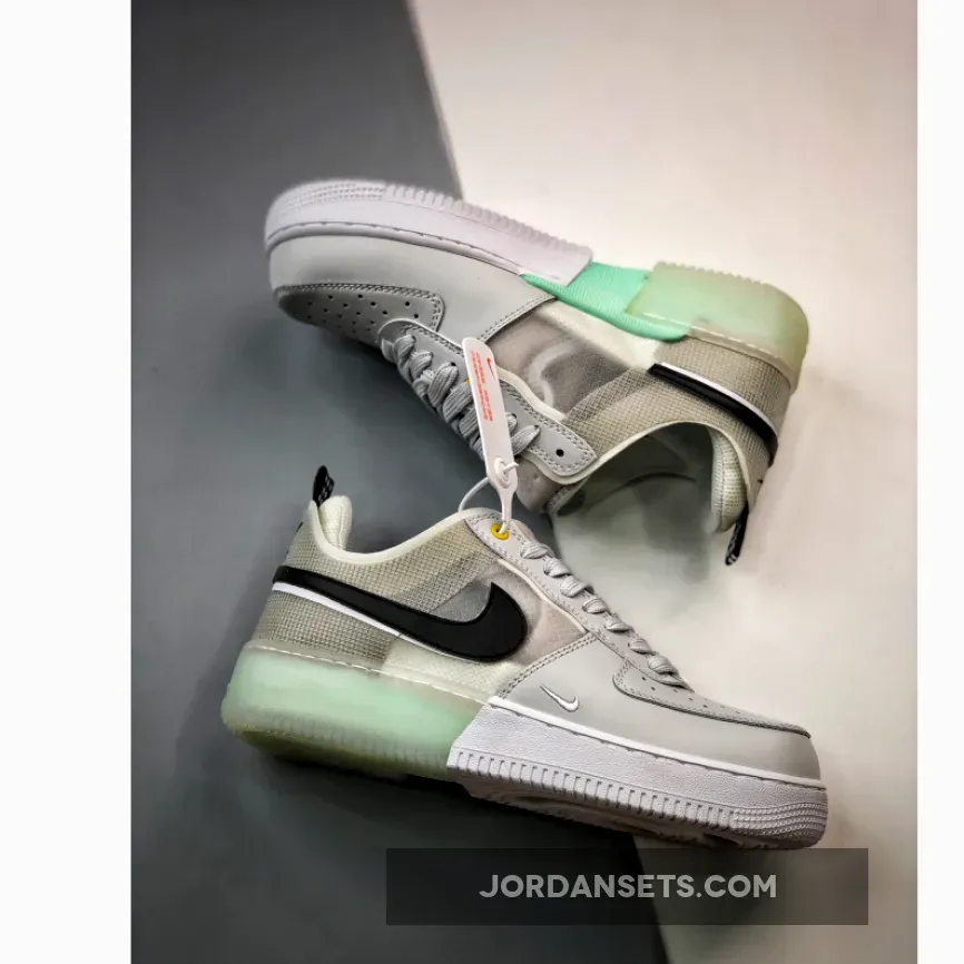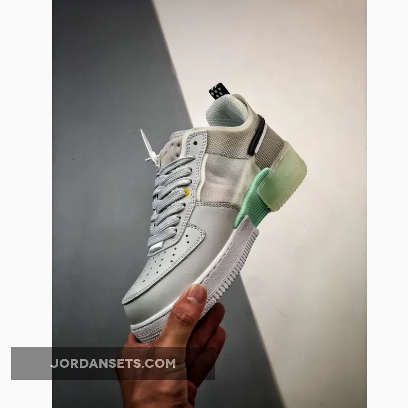 Constructed out of a mix of leather, mesh, and transparent TPU overlays, this Nike Air Force 1 React takes on an official color combination of Photon Dust, White, Mint Foam, and Olive Aura.