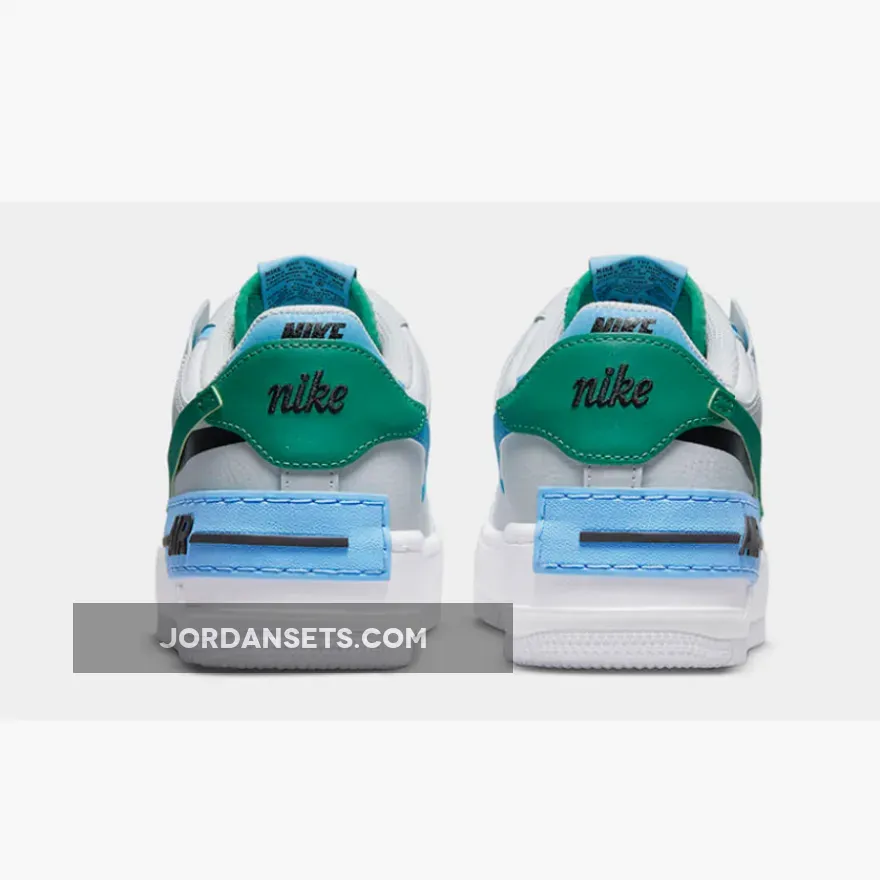 The Nike Air Force 1 Shadow has just expanded its colourway for the colder months. Check out the Nike Air Force 1 Shadow Photon Dust Malachite. This upper is dressed up mostly in light grey Photon Dust matte-finish tumbled leather from heel to toe. A vivid contrast of colour comes in the form of the double Swooshes on the lateral side, in Malachite tumbled leather and printed black.