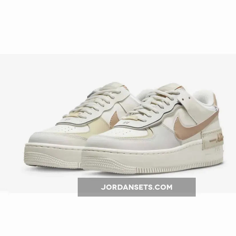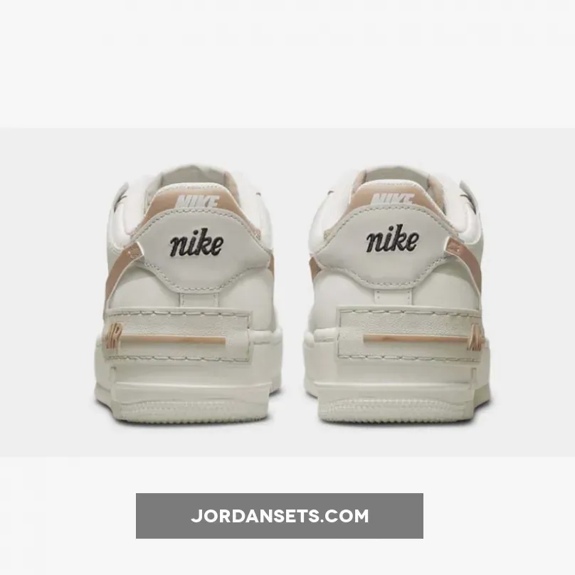 The Nike Air Force 1 Shadow Sail Hemp reveals a base in beige leather which is enhanced by brown details on signature brandings such as the side swoosh on the layered look.