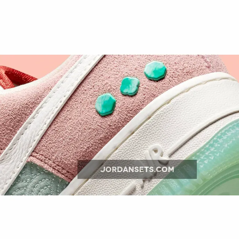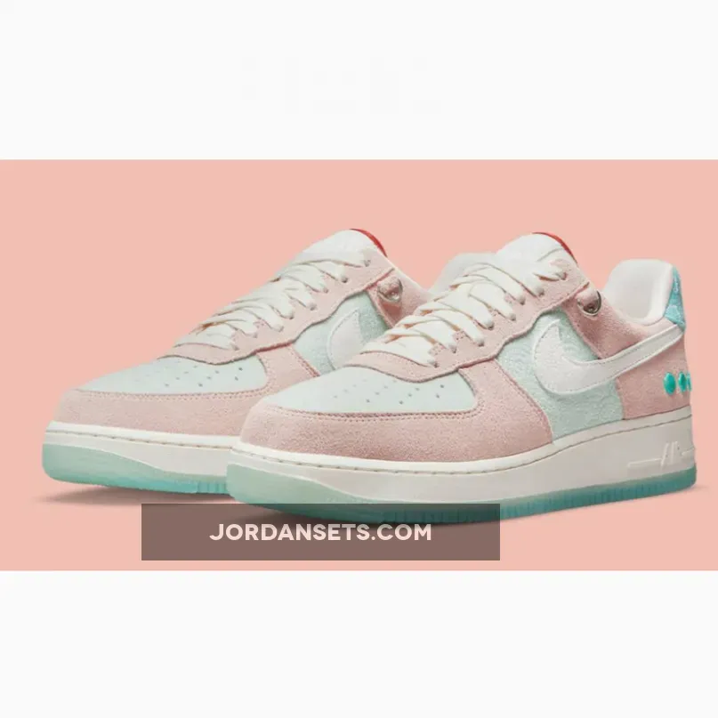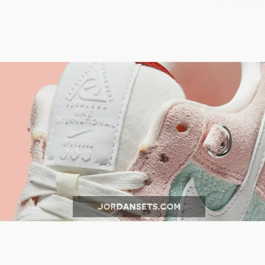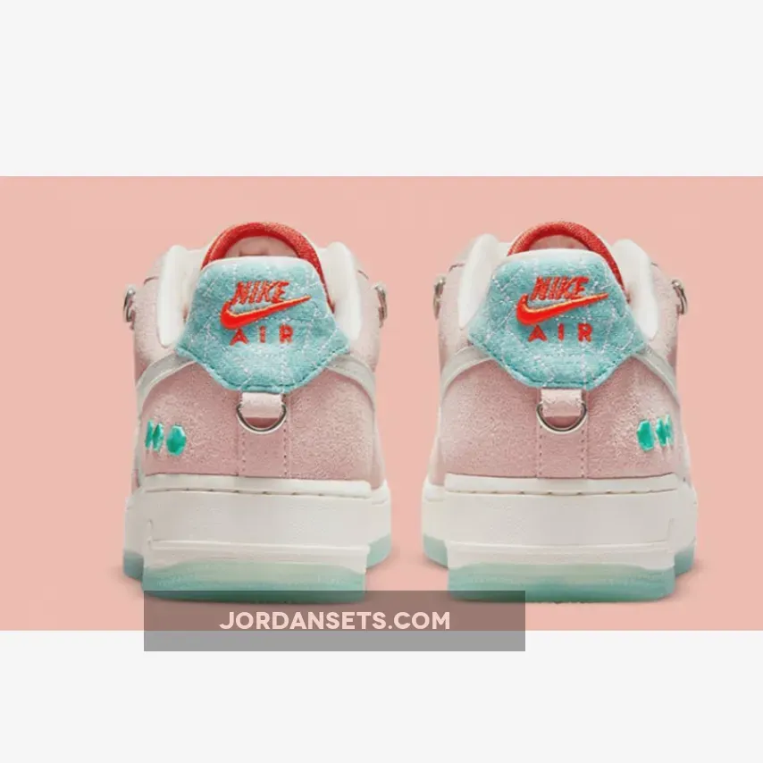 China appears to be the main inspiration on this Nike Air Force 1 Low that combines special Jade ornaments and bright shades. Unique stitching appears on the panels and heel, while new branding lands on the tongue and insoles, where the ’Shapeless, Formless, Limitless nickname derives from. Pink suede adorns the overlays, Green accents run throughout, and ‘NIKE INTERNATIONAL’ branding on the tongue with what looks to be individual numbering. Other highlights include metal hardware and a vibrant Green on the rubber outsole.