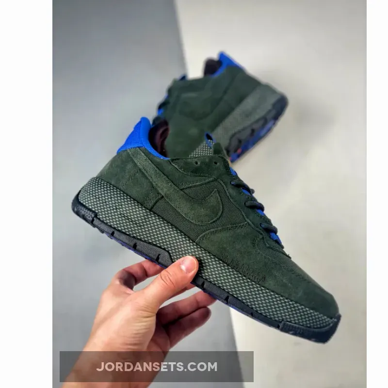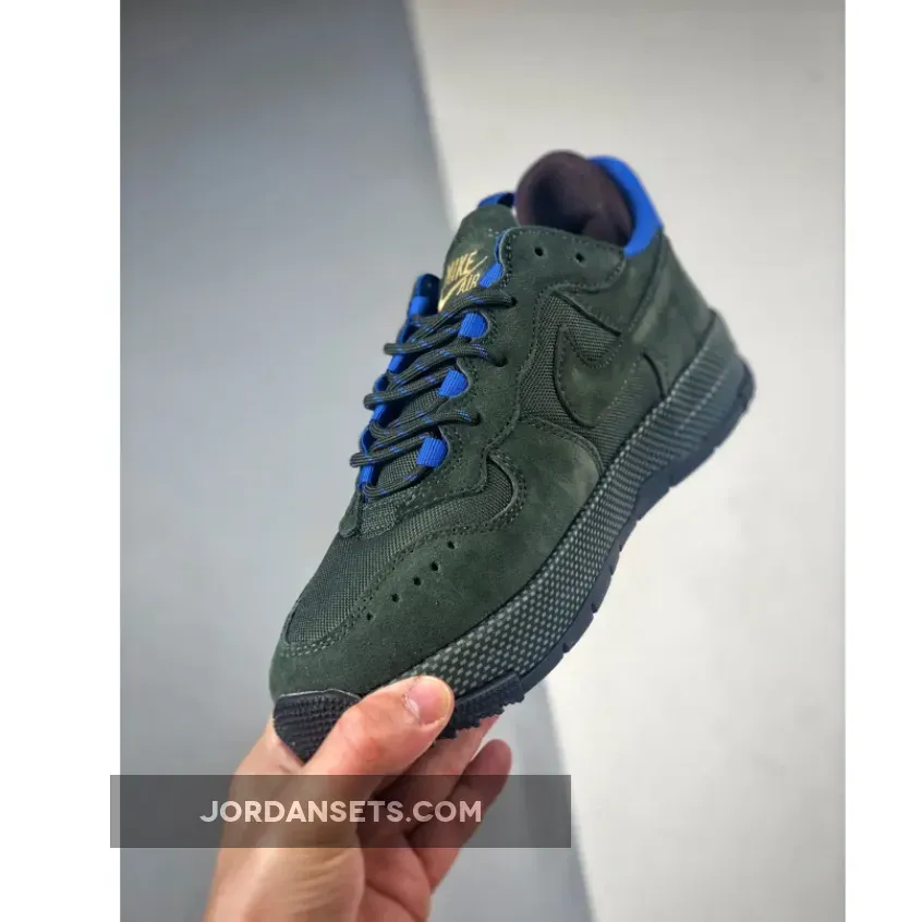 this Nike Air Force 1 Wild is geared towards hikers as the sneaker takes on a more durable and rugged construction. The Nike Air Force 1 Wild begins with a ballistic mesh base along with durable nubuck noted on the overlays. Additional standout details include pull tabs on the tongues, an added inner bootie for a snug fit, perforations and exposed stitching on the medial and lateral forefoot, a textile-wrapped midsole, and a trail-ready rubber outsole for optimum traction. This colorway gets covered in two tones of green all throughout the upper along with Deep Royal Blue and Brown accents for that fall-inspired palette;and subtle touches of “Campfire Orange” mark the outsole underfoot.