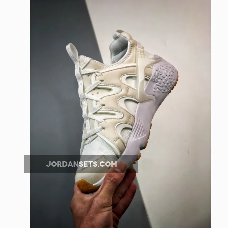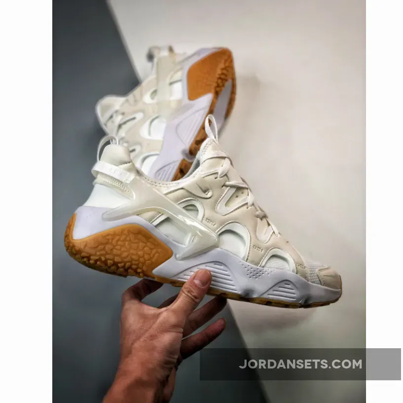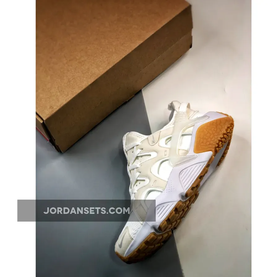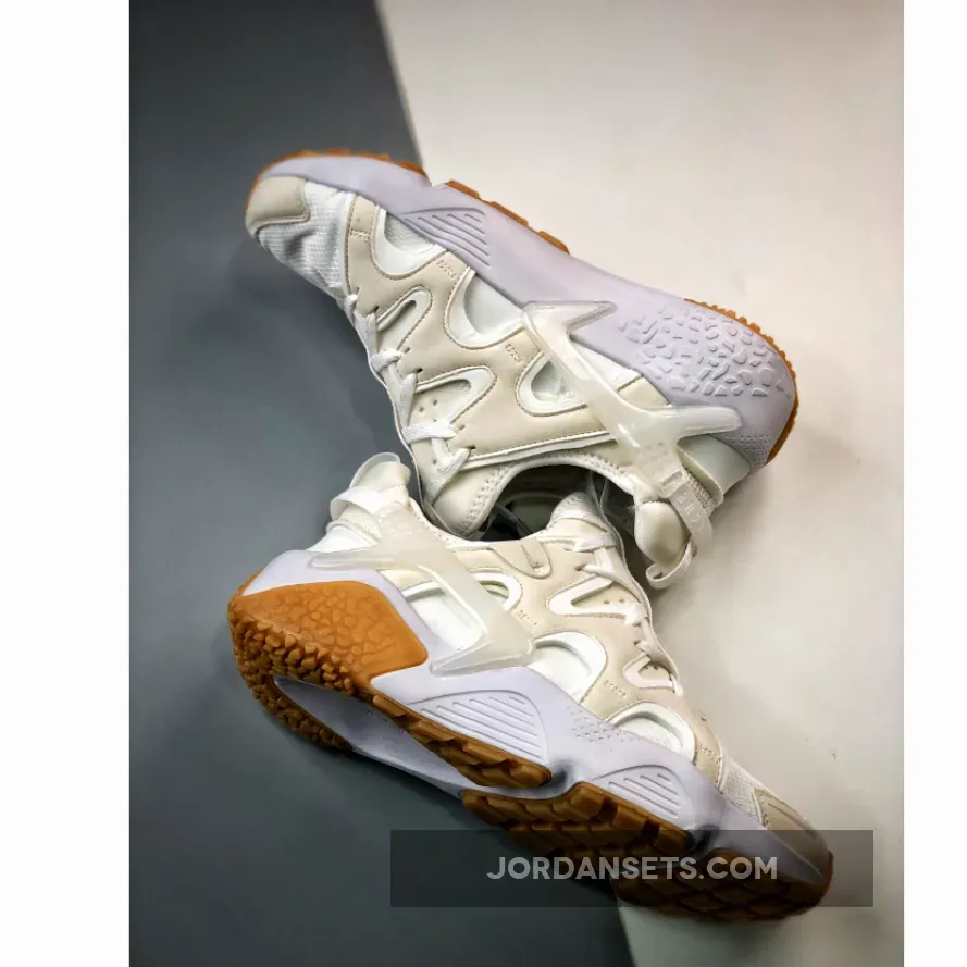 A more statement-making and edgy version of Tinker Hatfield’s sandal-sneaker hybrid design, the Nike Air Huarache Craft Sail Gum is minimalist yet bold at the same time. It features an off-white neoprene-like bootie that matches the similarly coloured mesh toe box and wavy suede overlays. More noteworthy details include the convenient pull tab and the milky semi-translucent heel clip.