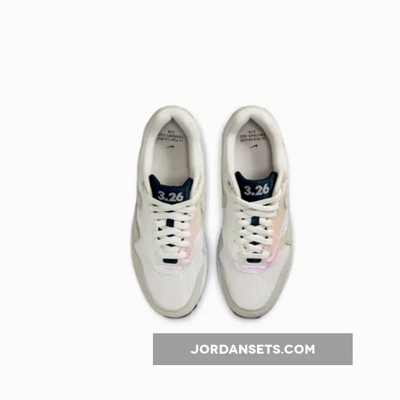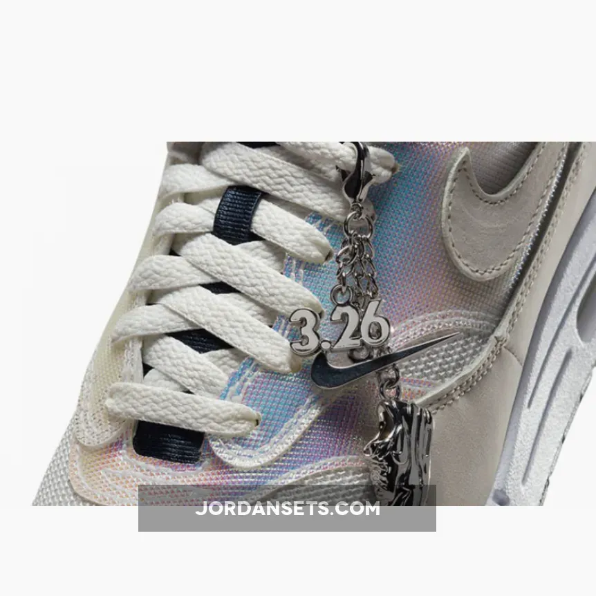 Elsewhere, a navy blue tongue with a sans serif “3.26” branding provides a nice contrast. As a cherry on top, this special iteration of Nike Air Max 1 comes with a dangling metallic accessory that features charms in the shape of “3.26” text, a Swoosh and a sneaker.
