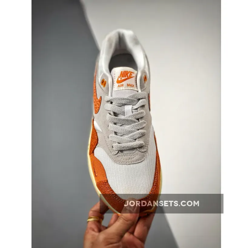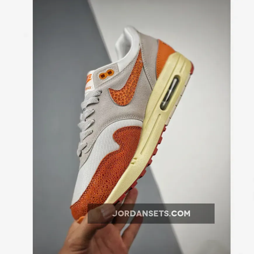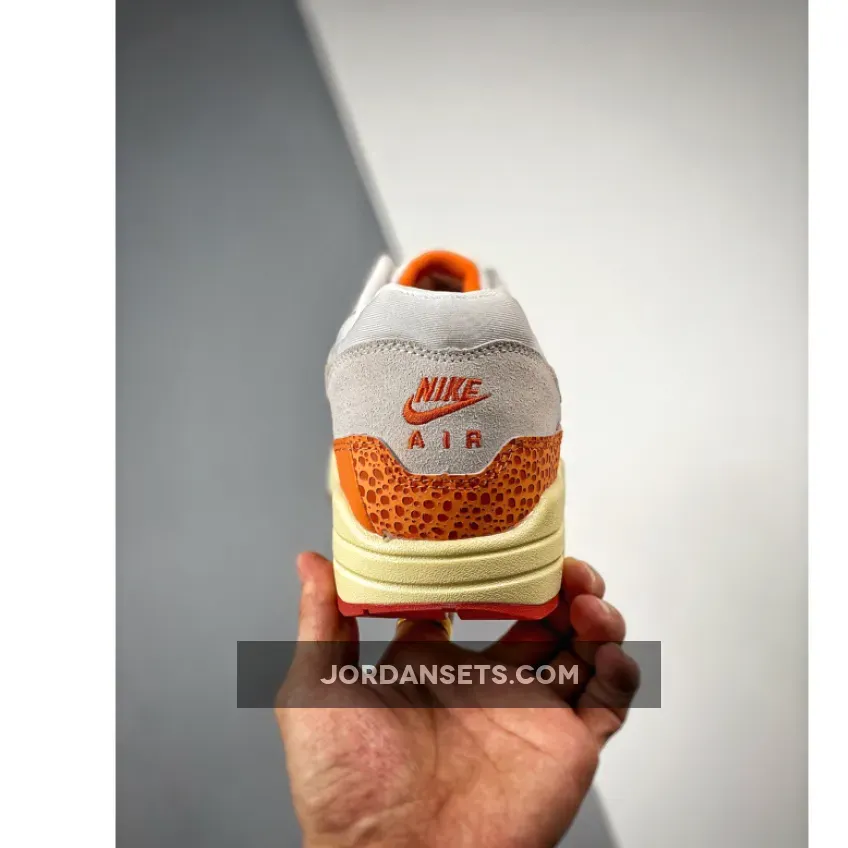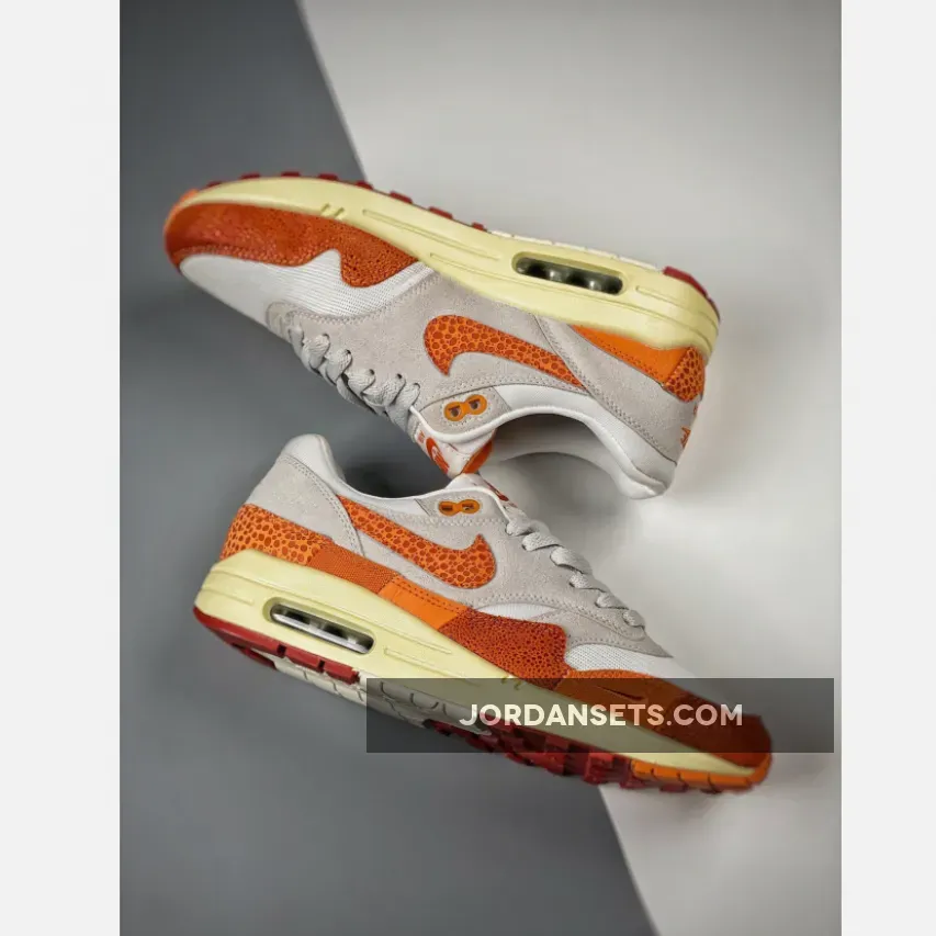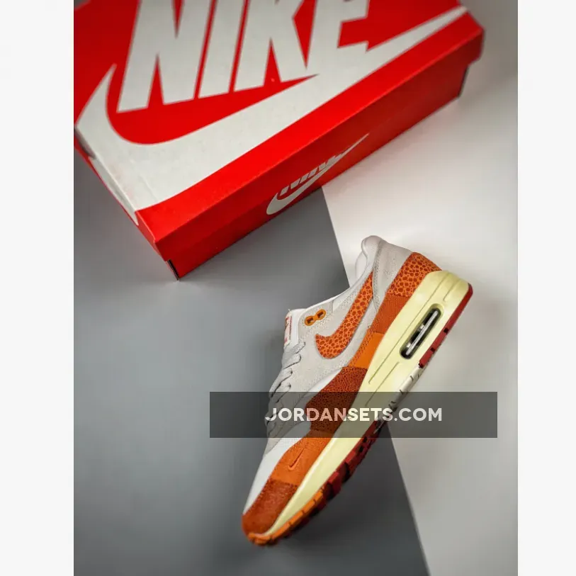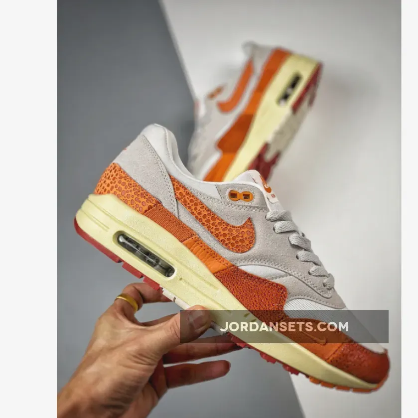 The 35-year-old Tinker Hatfield-designed Nike Air Max 1 brings back its “Master” collection from 2017. Presenting the Nike Air Max 1 Magma Orange. This Air Max 1 is all grey on the upper part of the shoe, from the mesh base to the suede overlays. The titular Magma Orange takes over starting with the signature profile safari print Swooshes on both the medial and lateral sides of the shoe. The colour continues on the bottom half of the shoe from the toe cap, the mudguard to the heel counter. These sections are a patchwork quilt of animal prints, including elephant and faux snake, and canvas. Branding on the tongue tab and the heel tab also take on Magma Orange.