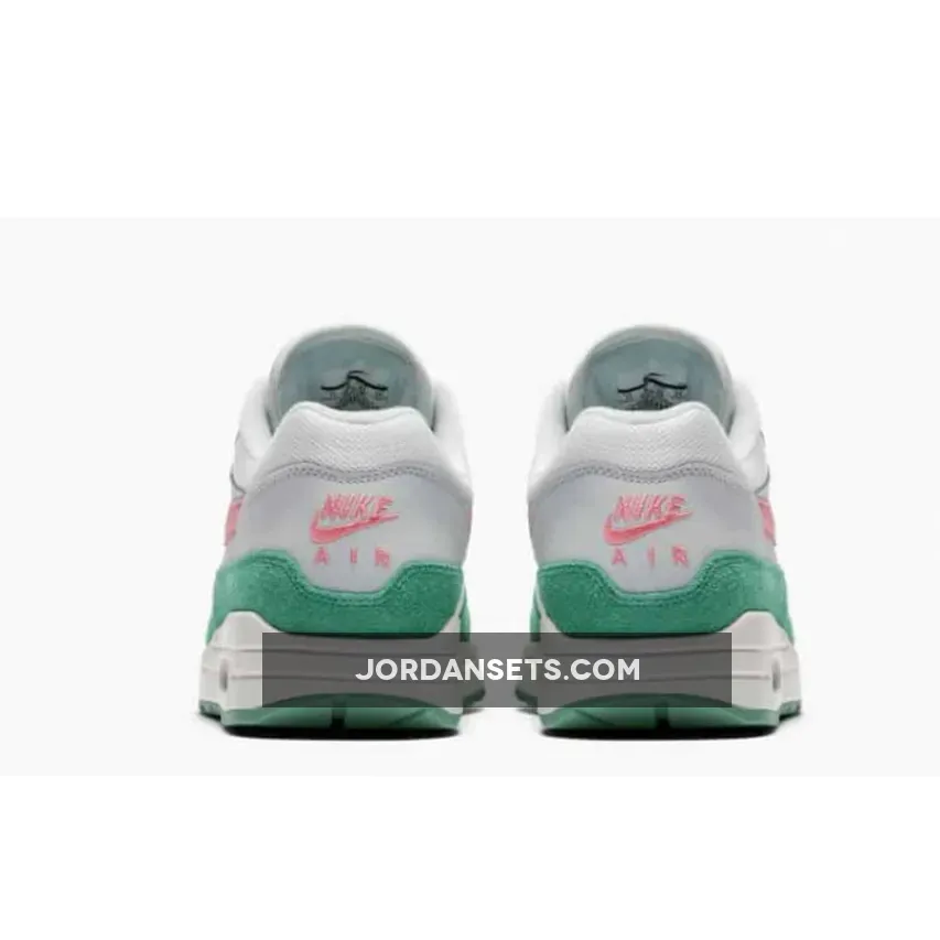 This bright Nike colorway debuted in March of 2018, updating the classic silhouette with vibrant colors and premium materials. The Air Max 1 ‘Watermelon’ features a grey body constructed with supportive mesh and leather. A green suede mudguard runs around the foot and matches the sneaker’s rubber outsole. This fruit-inspired colorway pops with a pink Swoosh and other bright accents across the shoe.