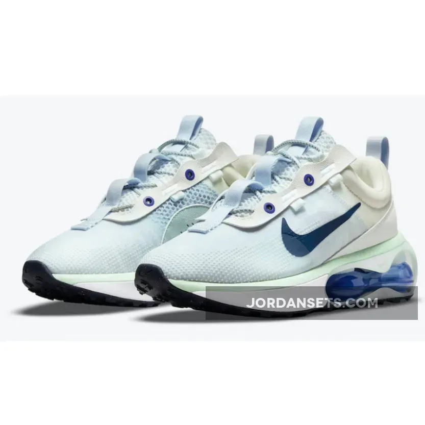 Summit White textiles and meshes, as well as light blue gridded nylon materials, dominate the upper for a sleek base. Eyelets on the exaggerated lacestays and the profile Swoosh decals are in a contrasting navy that still maintains the model’s overall everyday-friendly aesthetic. Black rubber with a unique pattern underfoot adds traction and completes the women’s exclusive.