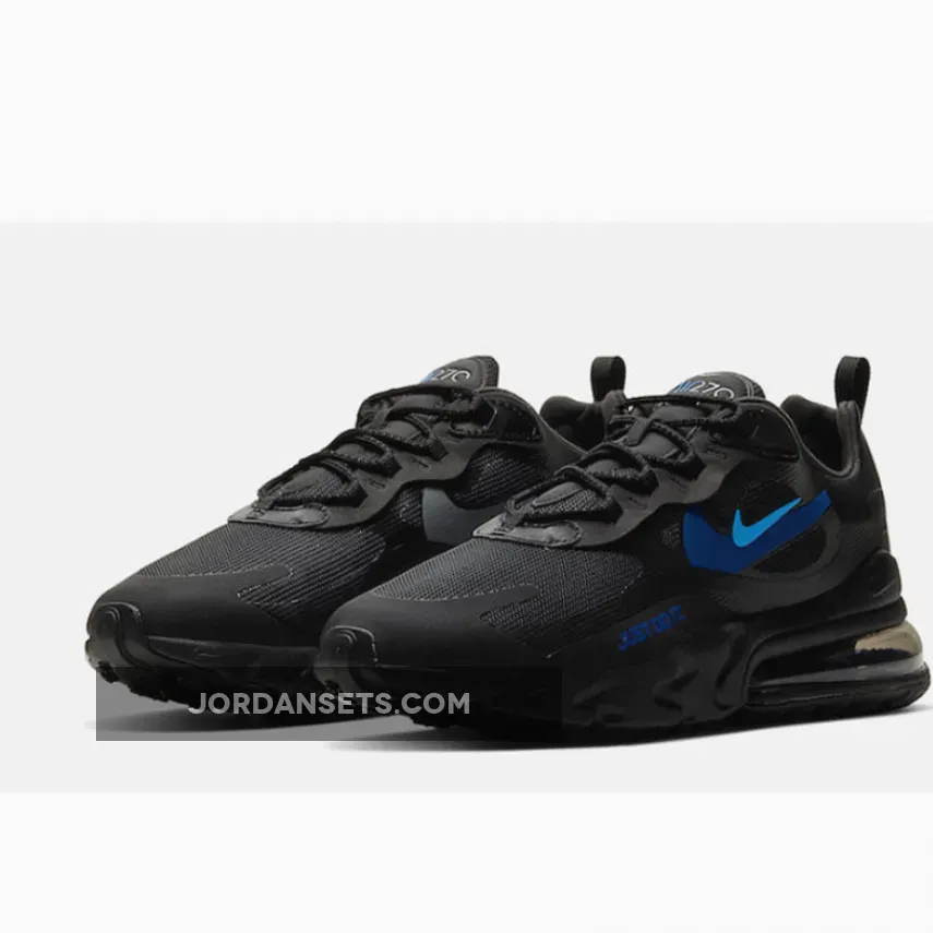 It’s time to get your hands on the Nike Air Max 270 React Just Do It Black. Versatile and guaranteed to absolutely smash the test of time, subtle details come in the form of branding, trend-led colours and industry-leading technology. Made to extend your run and improve performance, they tick every box.Crafted with a breathable mesh upper, synthetic overlays are added to increase durability and stability. Nike’s iconic Swoosh logo adorns the side and heel while the AIR270 branding is on the tongue for a final touch of detail. Designed to propel you forward and extend your stride, you’ll effortlessly reach your new personal best in these.Ultra stylish thanks to their pared-back black and blue colourway, they’re durable enough to wear every day and functional enough to wear on your Sunday run. Sure to stand out among your collection, the final touch comes in the form of “Just Do It” lettering to the side.Available to cop right now, add the Nike Air Max 270 React Just Do It Black and we promise you’ll want to wear them with absolutely everything.