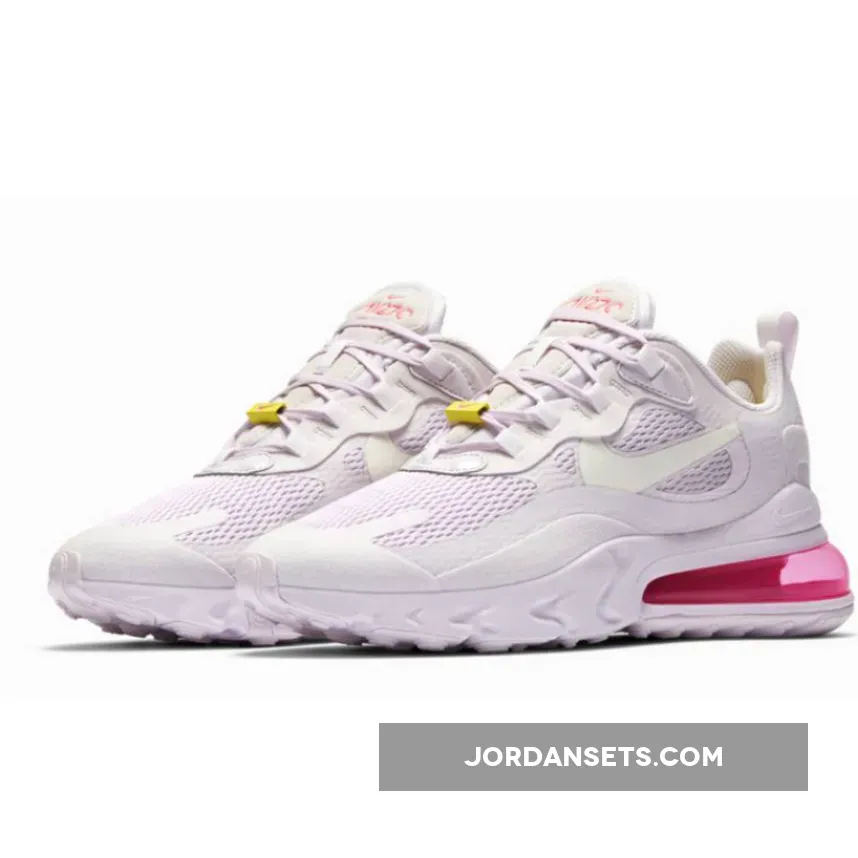 . The Swoosh hybrid will be keeping you comfier than ever with its sock-like upper, React Technology under the forefoot and Max Air unit under the heel. Added details come in yellow at the base of the lace unit, in a similar style to the AF-1 silhouettes, alongside further Digital Pink branding on the tongue and vertically down the heel of the lilac Air Max 270 React.