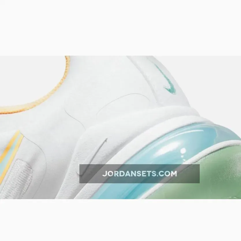 This offering of the Nike Air Max 270 features a clean White upper highlighted with soft Yellow and Blue contrasting accents giving off a summer vibe.
