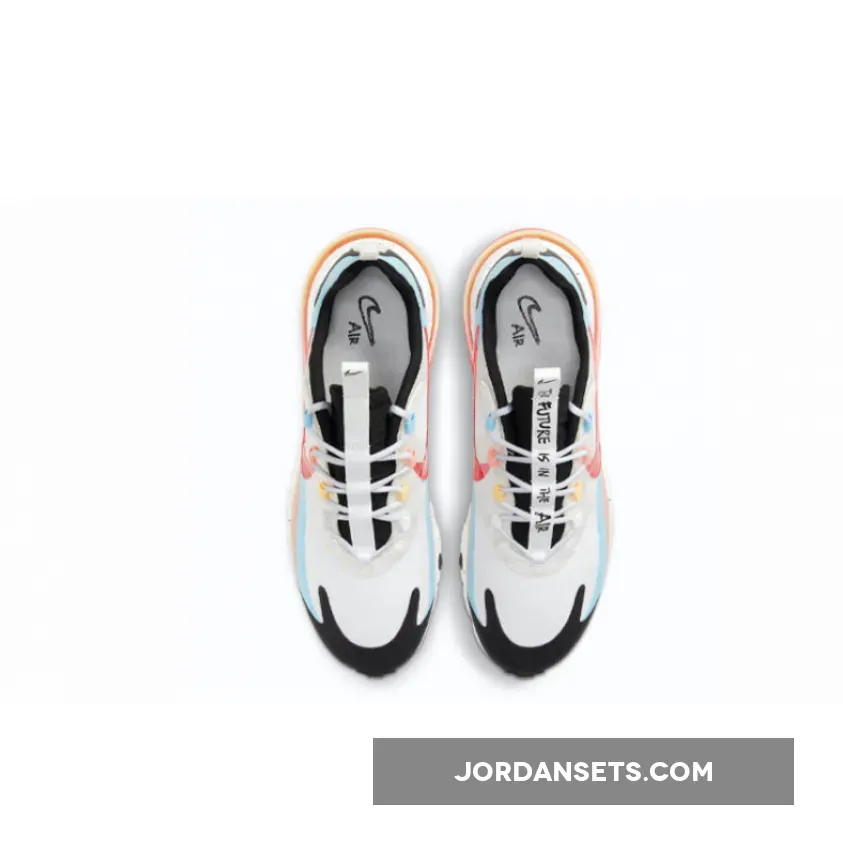 “I’m thoroughly impressed with my Nike Air Max 270 React ‘The Future is in the Air’! The vibrant colorway exceeded expectations and the quality is top-notch. Comfortable fit, sturdy construction, and unique design make it a must-have for sneakerheads.”