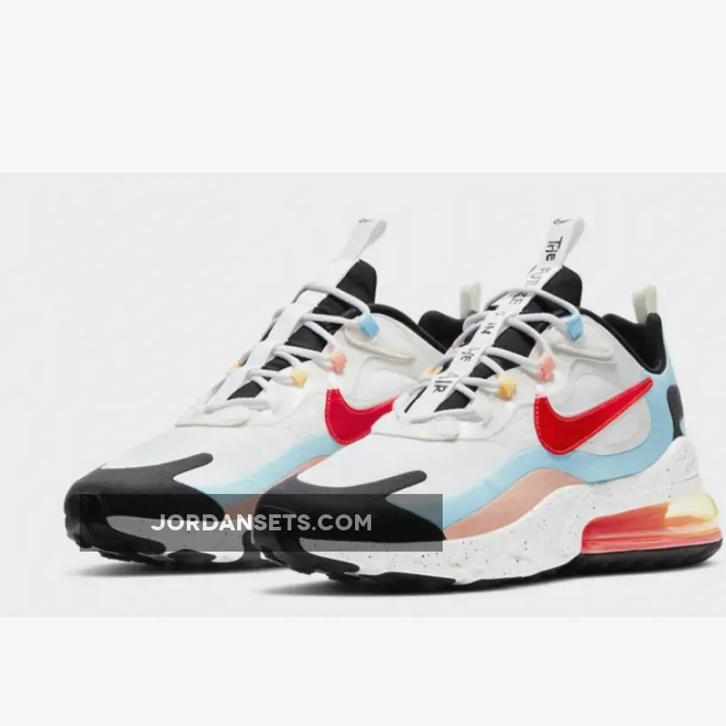 Inspired by the sky lantern, this offering of the Nike Air Max 270 React comes dressed in a White, Infrared, and Summit White color blocking. The shoe features a White upper with multi-color lace loops, Infrared Swooshes, Blue and Pink overlays atop a gradient Air Max heel unit. “The Future is in the Air” branding on the left tongue pull tab with the collection’s signature hangtag completes the design.
