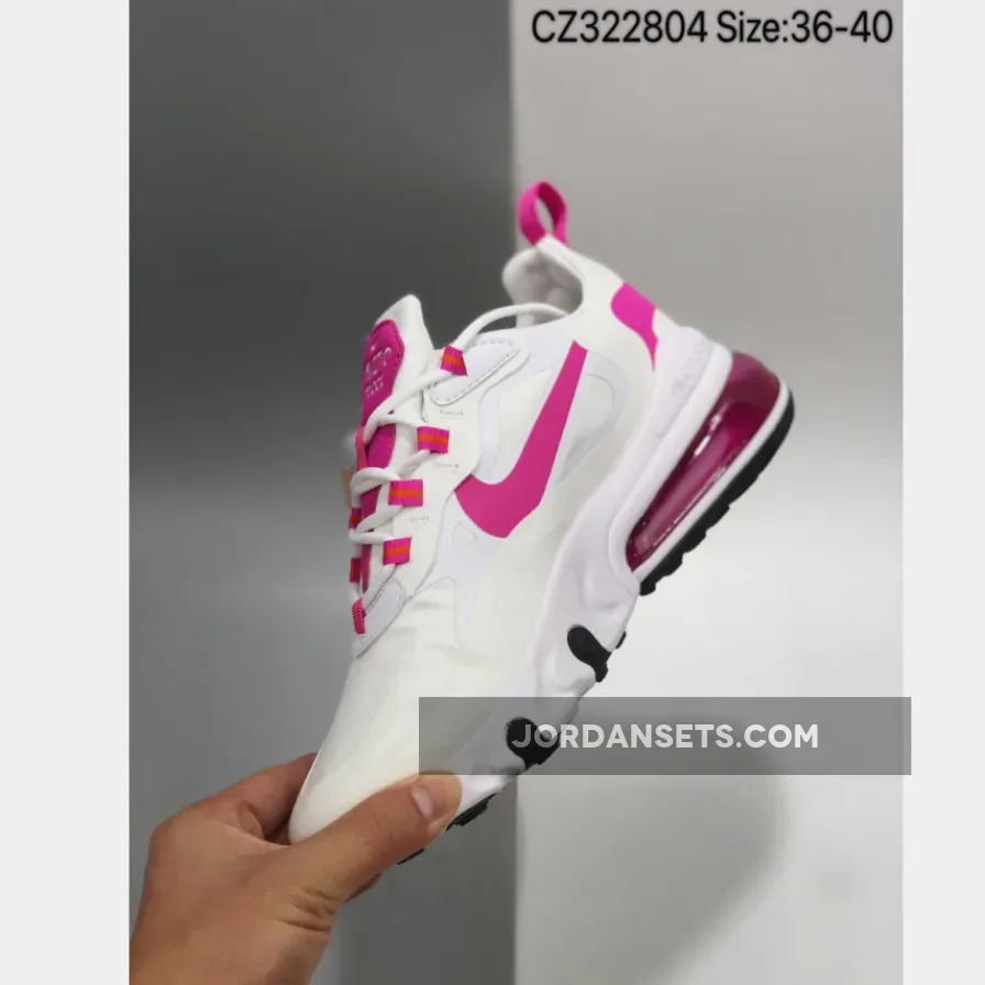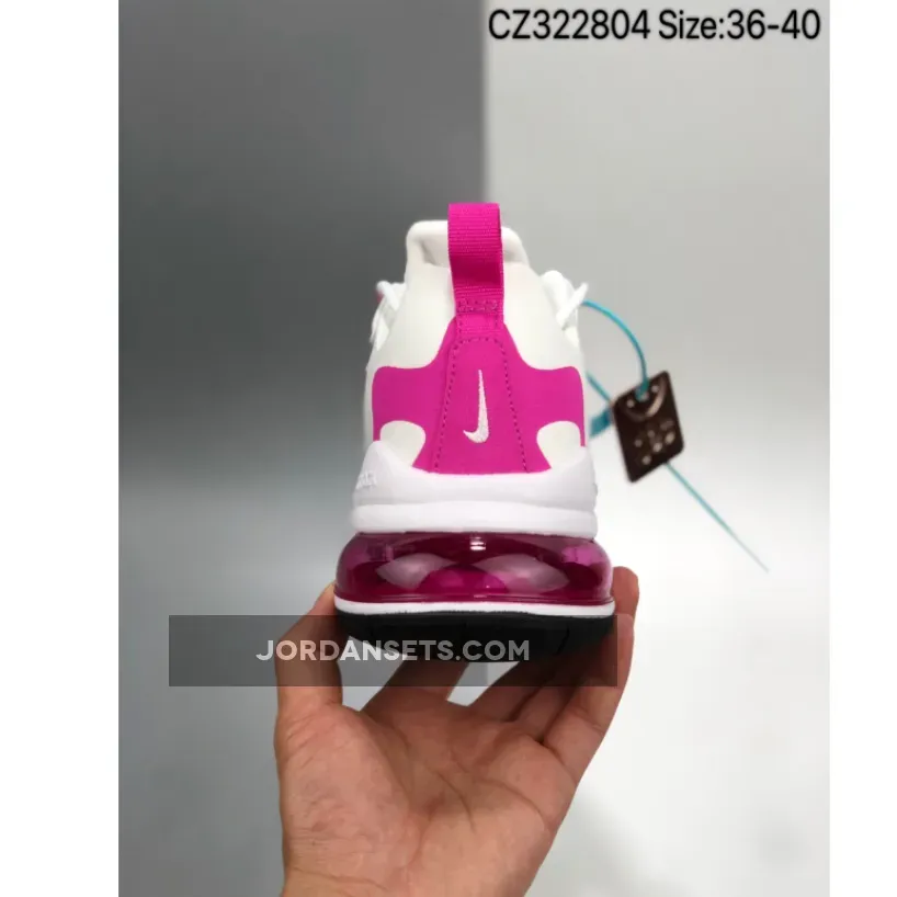 “I’m thoroughly impressed with my new Nike Air Max 270 React White Pink! The breathable mesh upper keeps my feet cool, while the responsive cushioning system provides excellent support. The sleek design and vibrant pink accents make it a stylish addition to my shoe collection.” – 5/5 stars