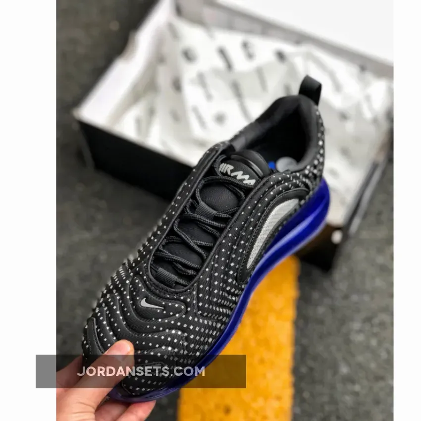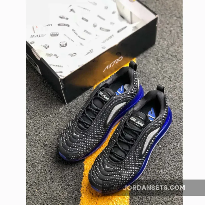 As Nike’s Air Max 720 readies itself for the summer months ahead, it’s begun to proliferate in a vast array of new makeups, one of which features pixel-style detailing on the upper. The stark black synthetic shell is contrasted with a sporty royal blue midfoot and Air Max unit for a familiar look, but the plethora of new details ensure that this 720 is quite unlike past releases. The pixel-shaped flecks appear in silver over the vast majority of the upper with the exception of the throat/toebox, while the signature abstract overlays trade out their standard plastic-outlined construction for a tightly knit silver mesh surrounded by leather. The tongue also gets in on the alternate stylings, boasting a large silver Air Max logo.