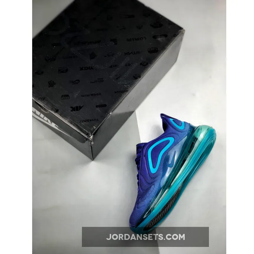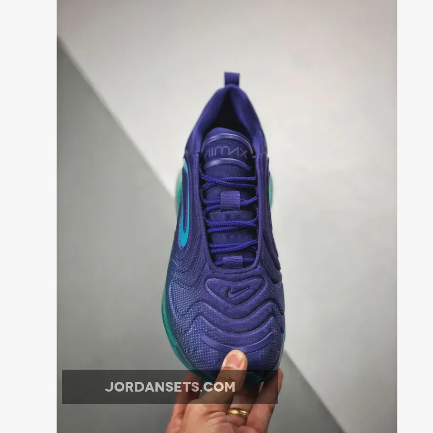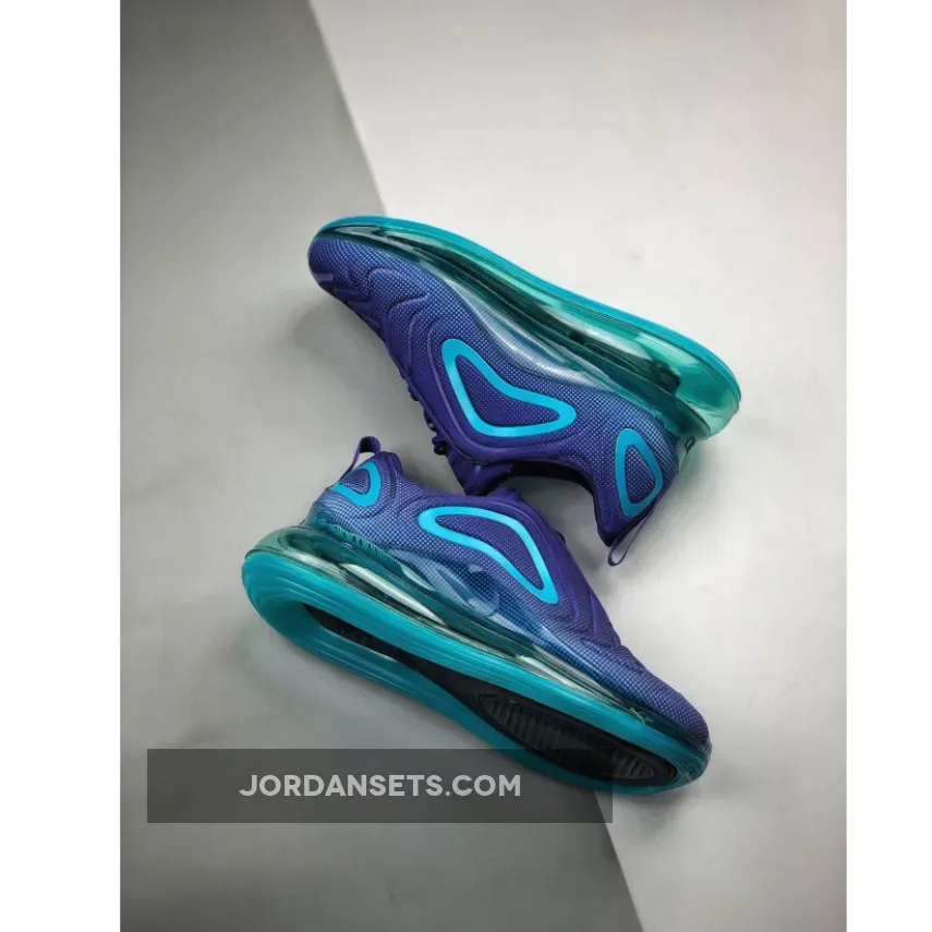 Dressed in a Nightshade, Regency Purple, and Spirit Teal color scheme. This offering features a gradient-styled upper highlighted with Teal accents on the overlays and 720 Max Air sole unit.
