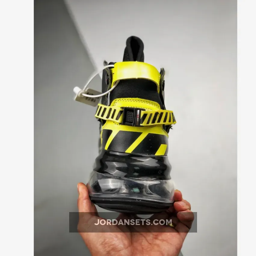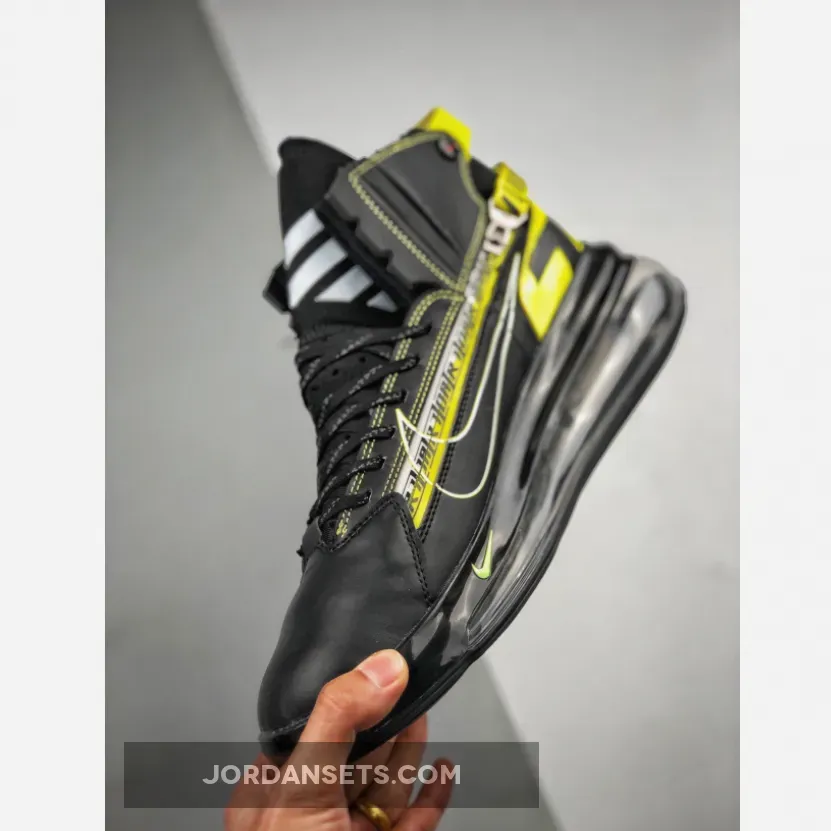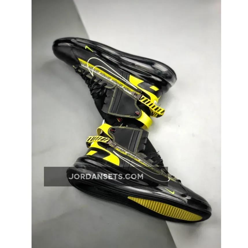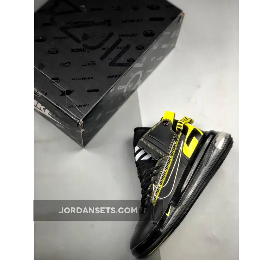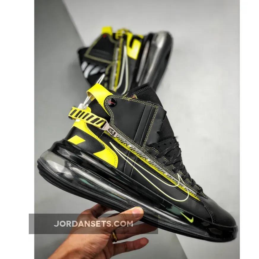 Dressed in a Black, Dynamic Yellow, and University Red. This Nike Air Max 720 features a Black leather upper with Yellow accents and a zipper that extends across the side panel. Additional details includes “Racing” branded on the heels, while having “AIR 7720” branding repeated on its racing stripe atop a Air Max heel unit.