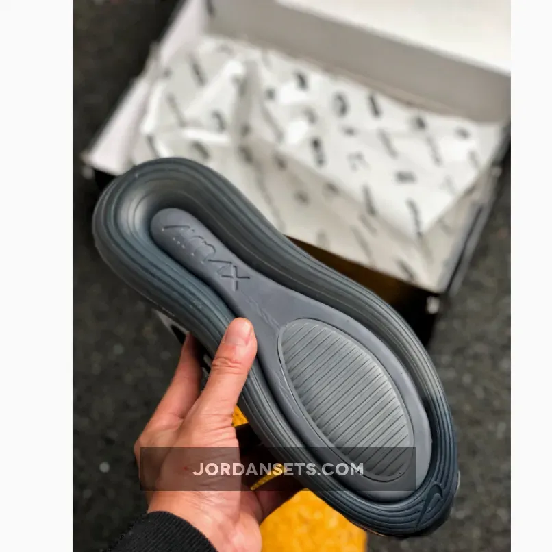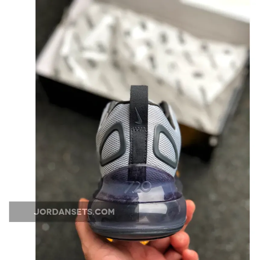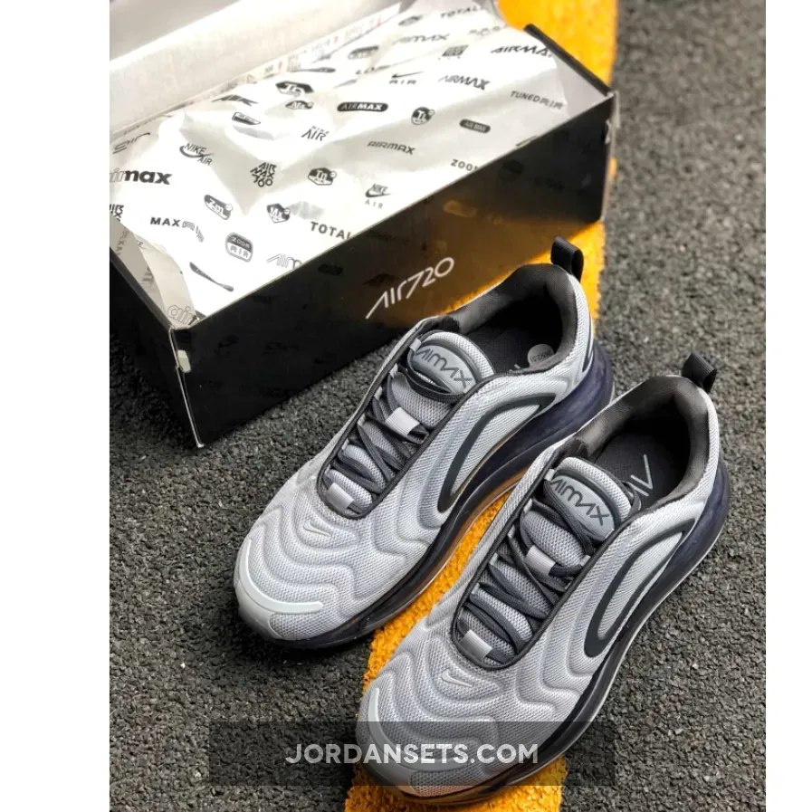 This offering features a Wolf Grey mesh upper with Anthracite plastic overlays. Anthracite continues on the laces, interior, and back pull tab as well as on its Air Max 720 sole unit.